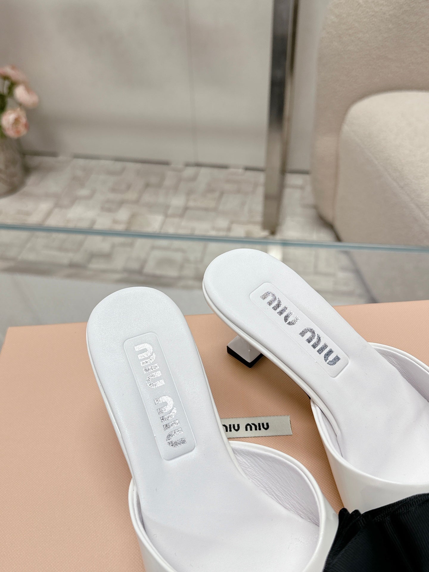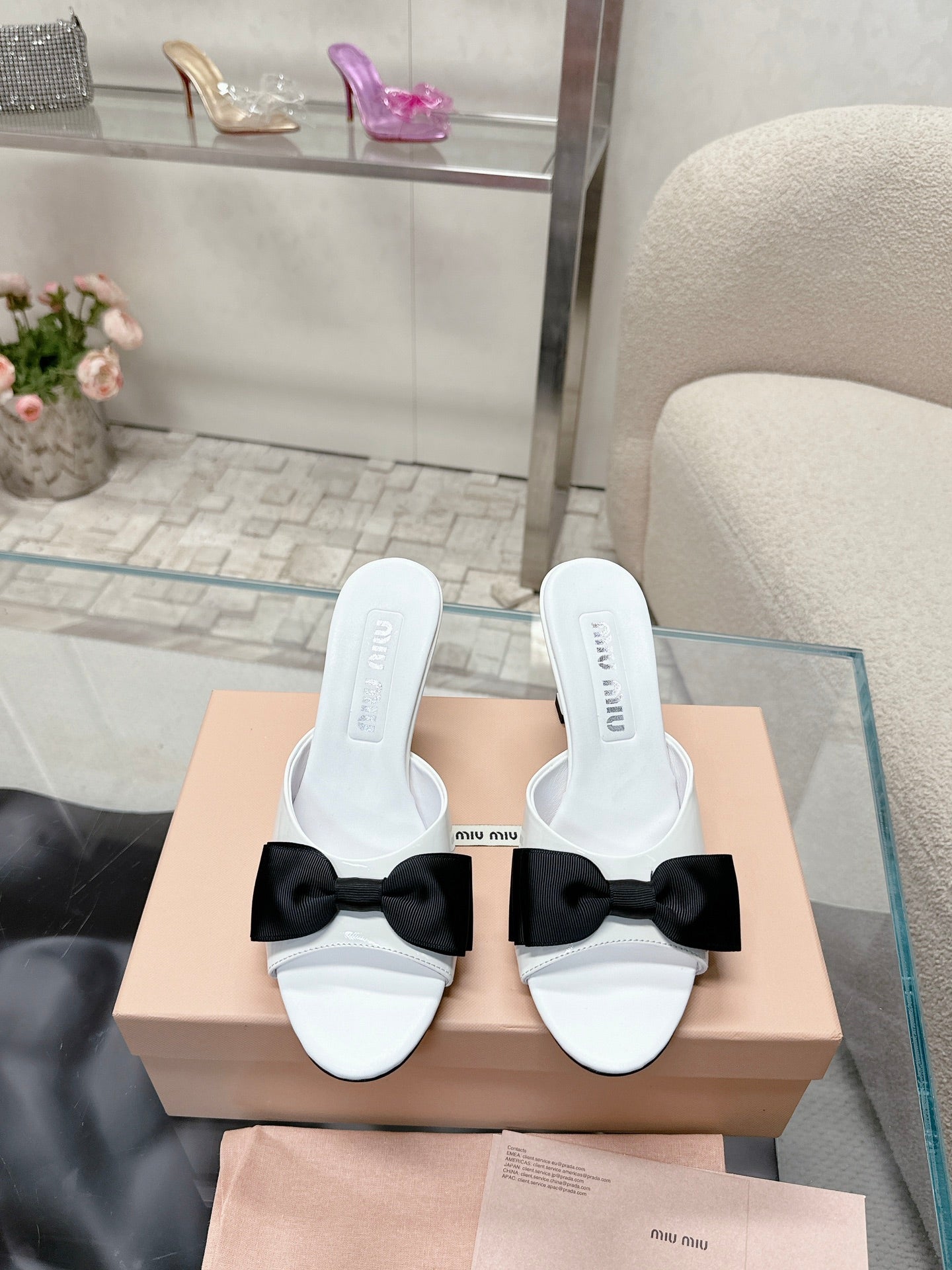 Miu Mordoré Black Bows Mules 70mm White Cowhide 445516