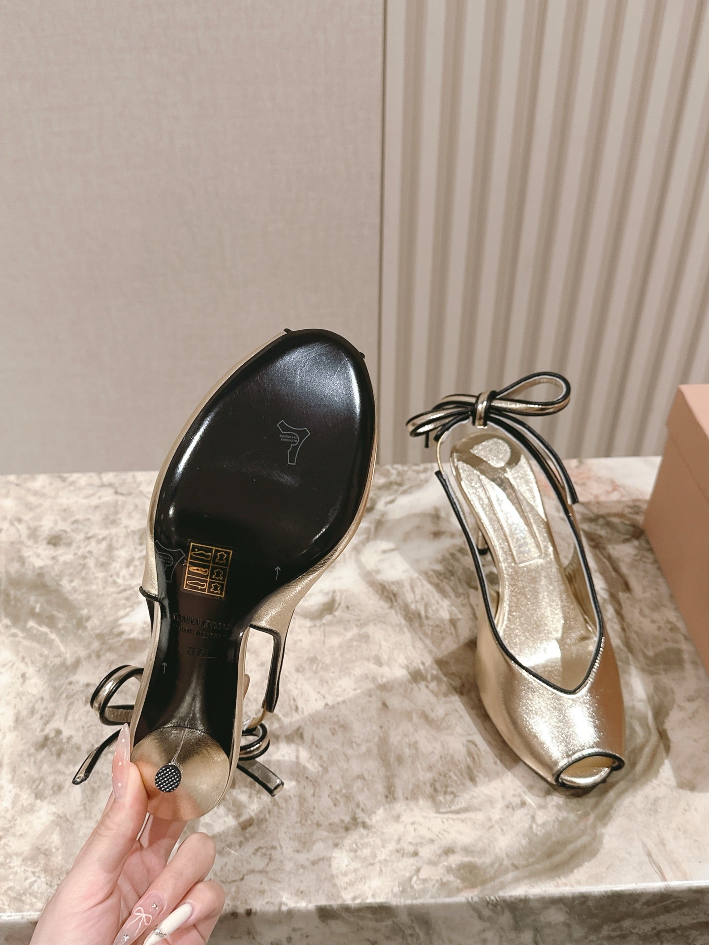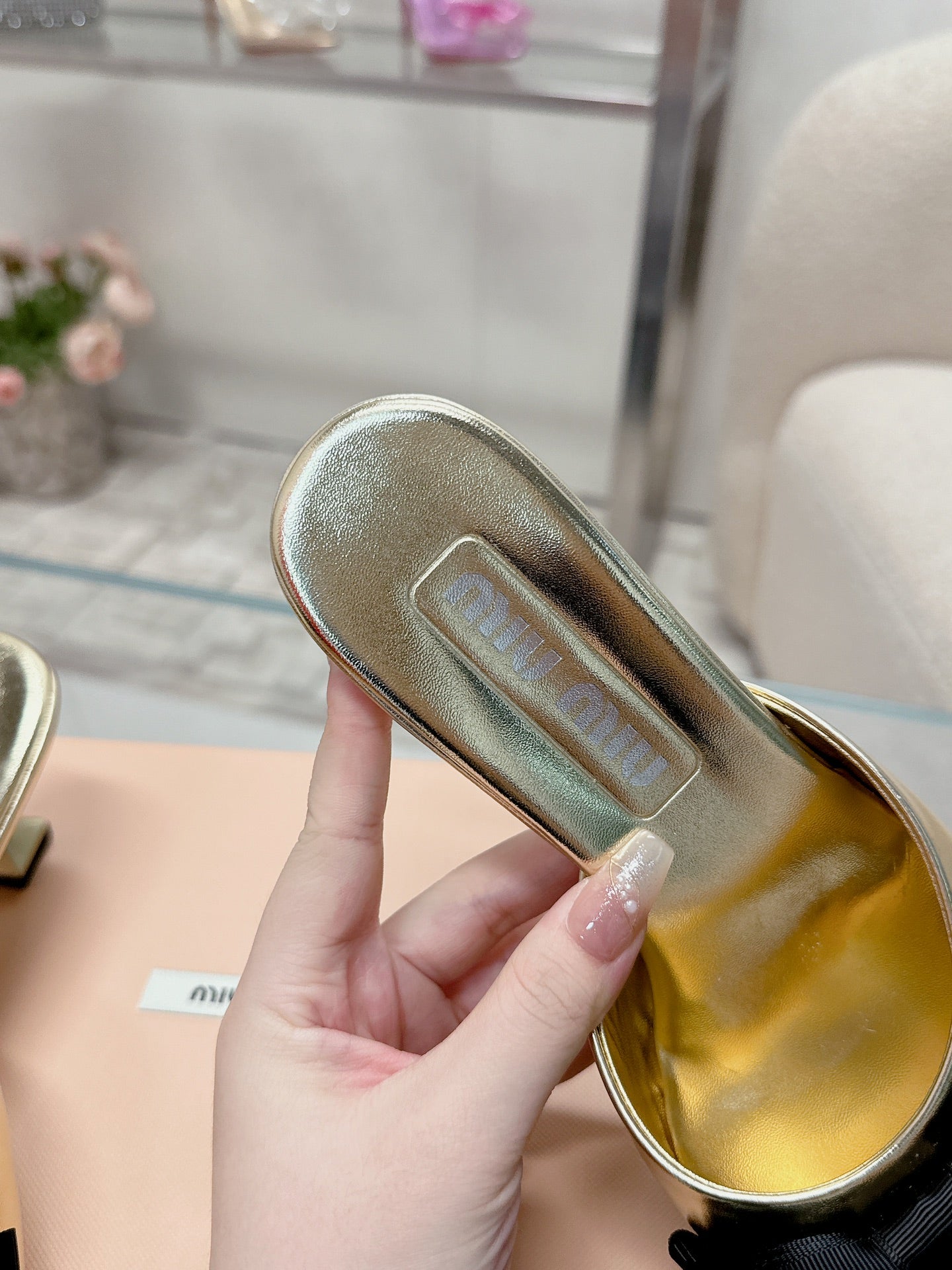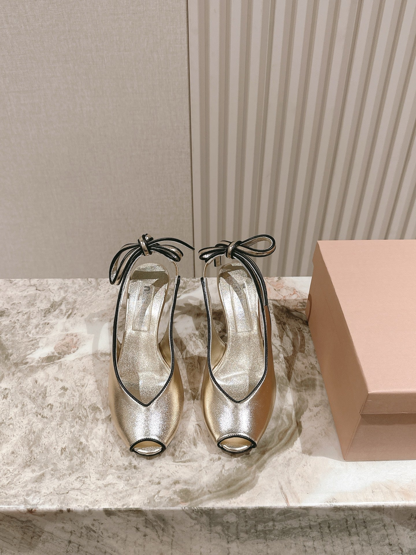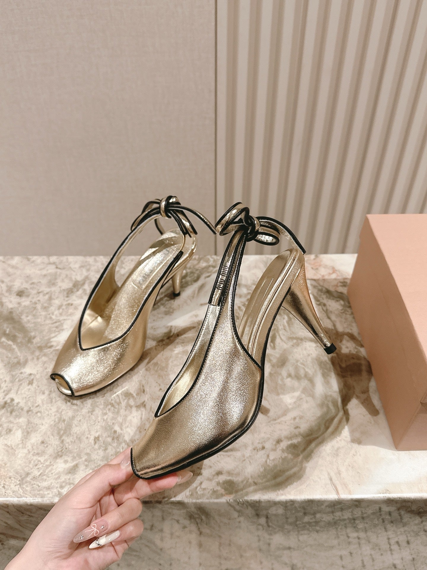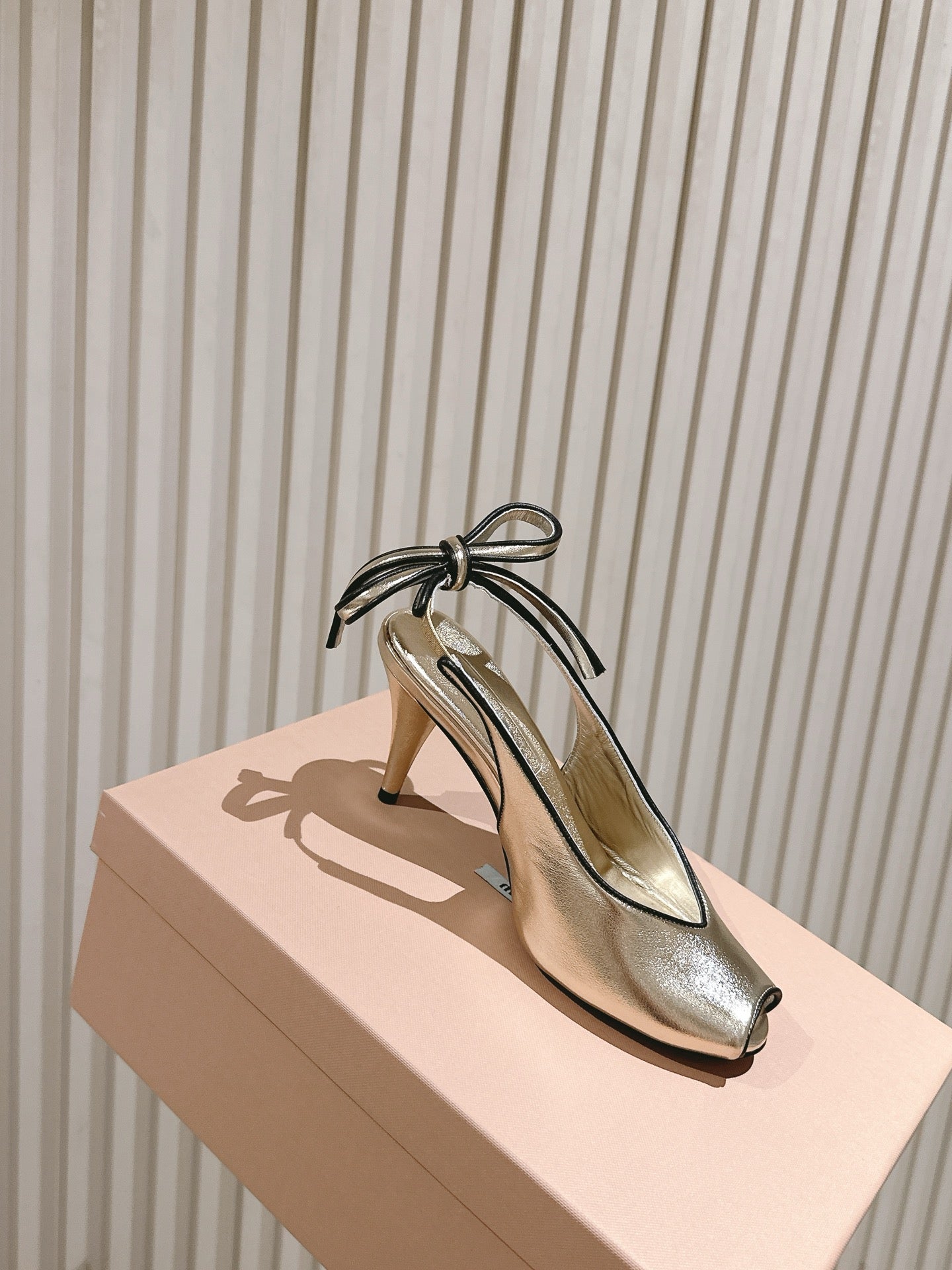 Miu Mordoré Slingback Pumps 85mm Light Gold Cowhide Sheepskin 445794