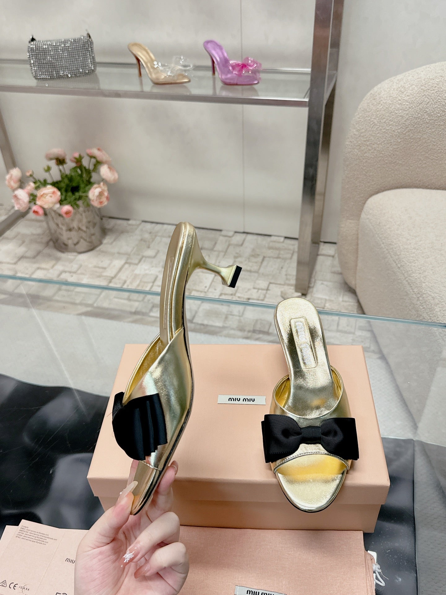 Miu Mordoré Black Bows Mules 70mm Gold Cowhide 445514