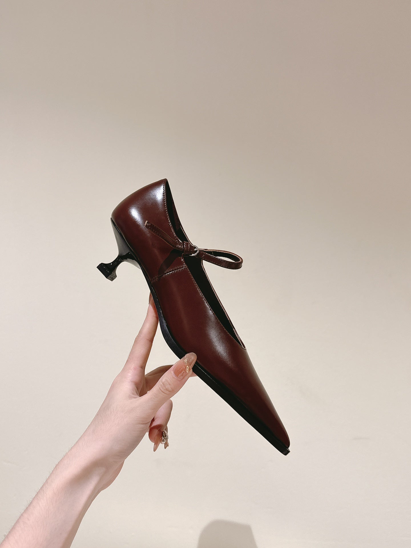 Miu×𝐵𝑎𝑙𝑎𝑛𝑐 Singback 55mm Chocolate Cowhide 445531
