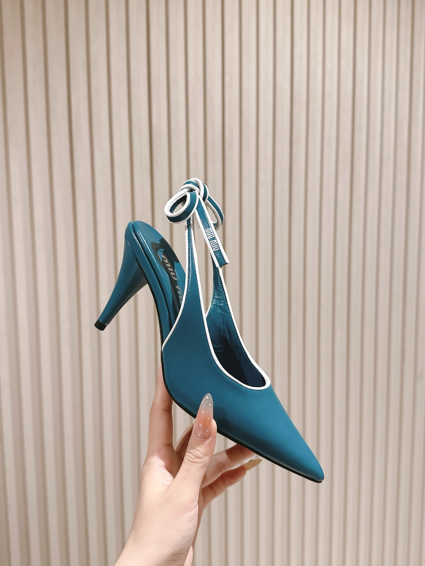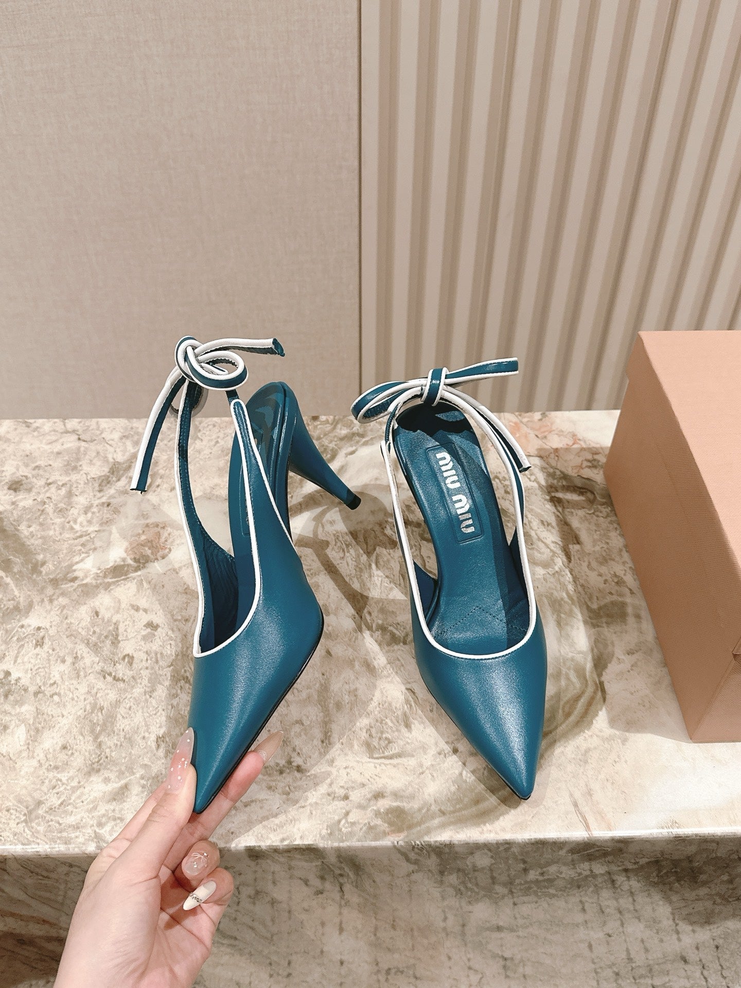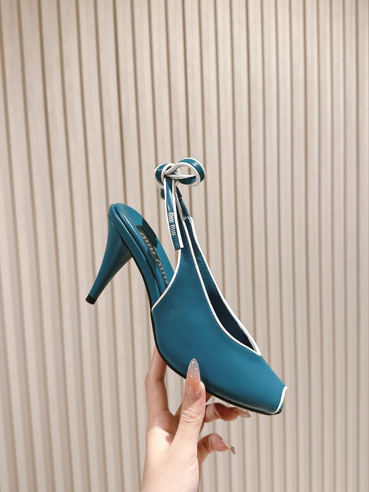 Miu Mordoré Slingback Pumps 85mm Blue-teal.Cowhide Sheepskin 445792