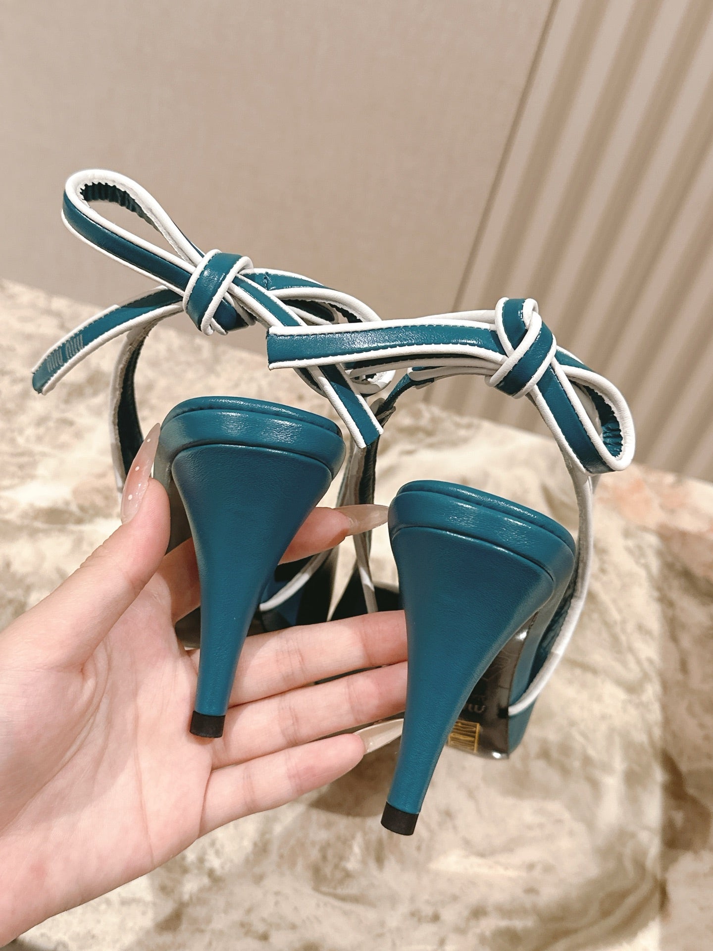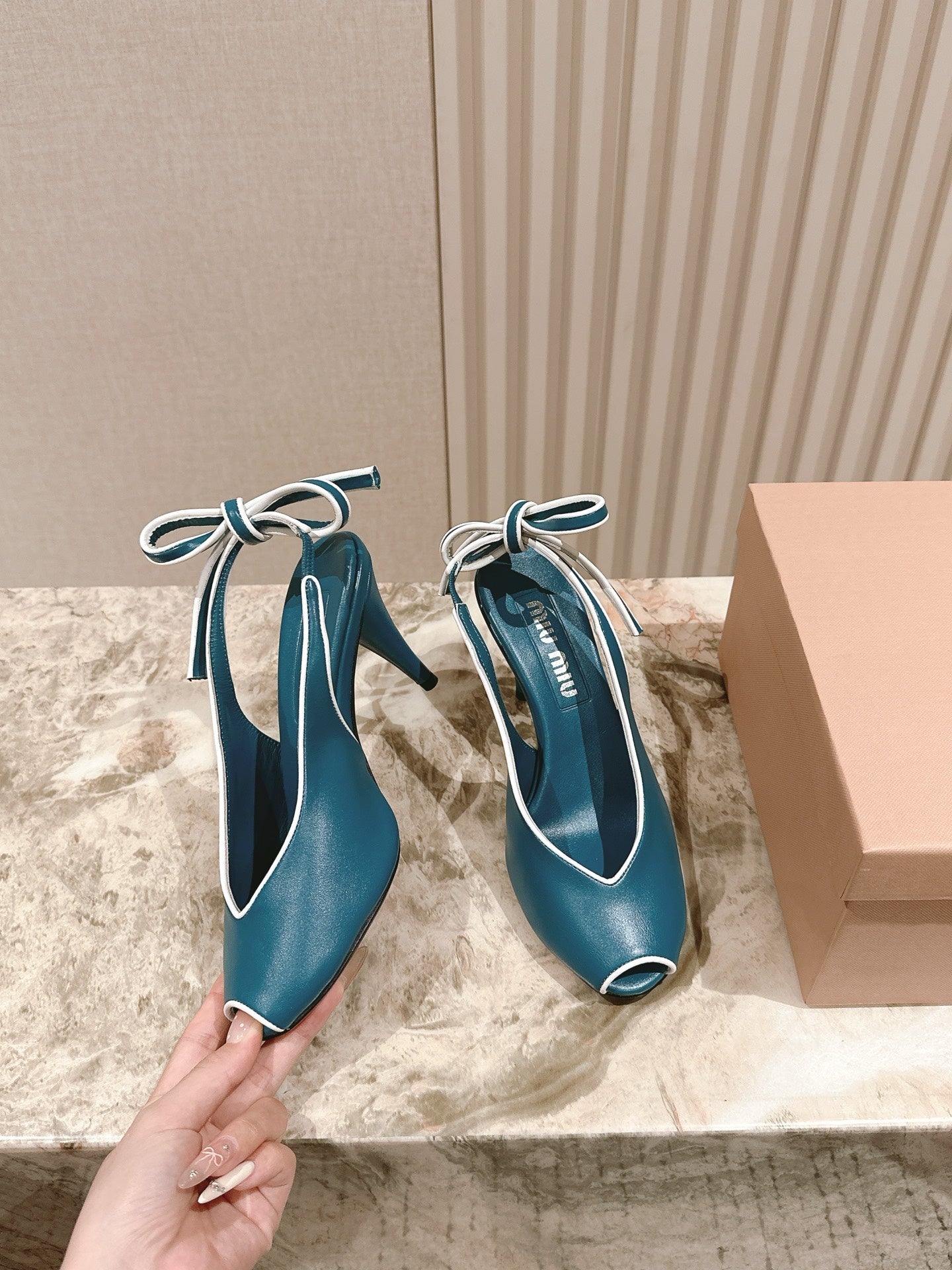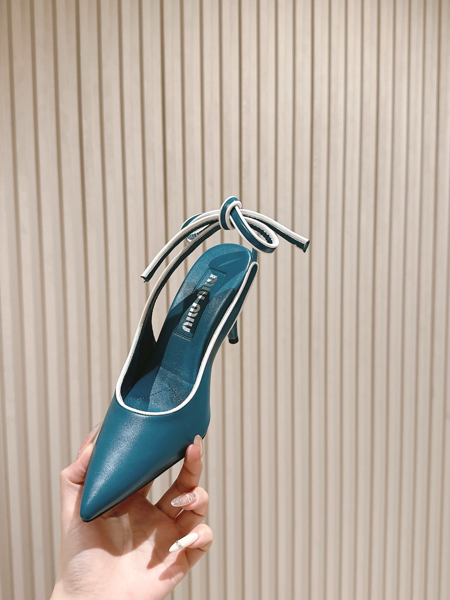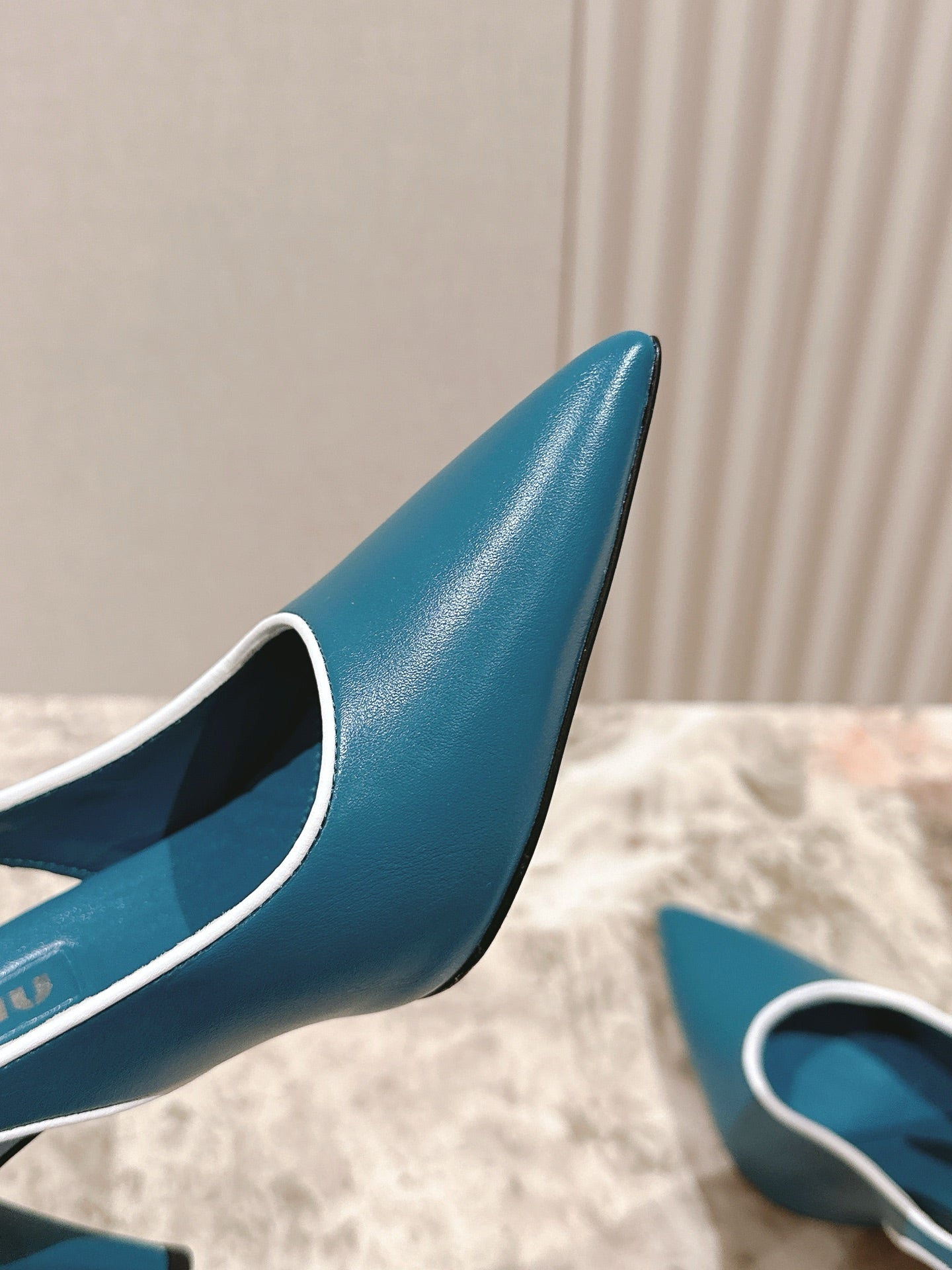Miu Mordoré Slingback Pumps 85mm Blue-teal.Cowhide Sheepskin 445792