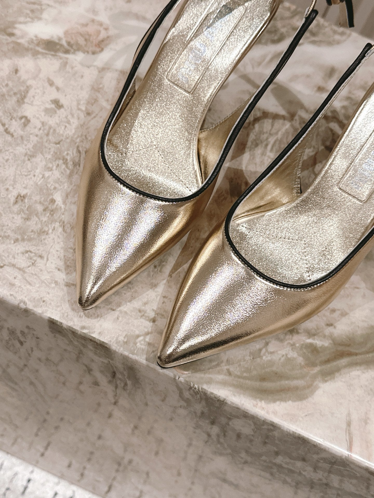 Miu Mordoré Pointed Toe Slingback Pumps 85mm Light Gold Cowhide Sheepskin 445789