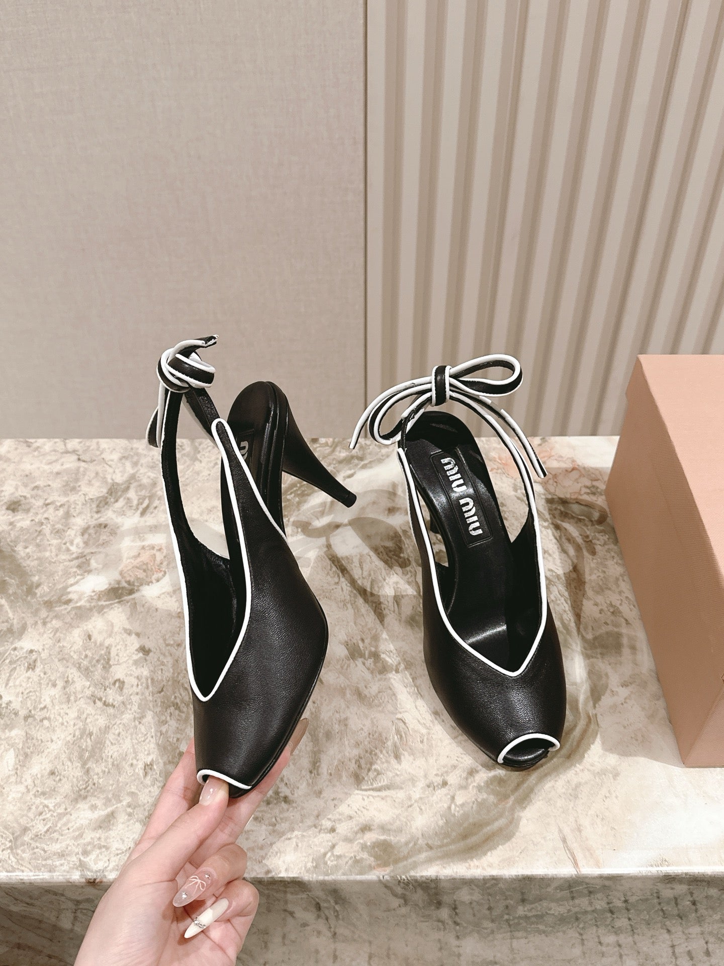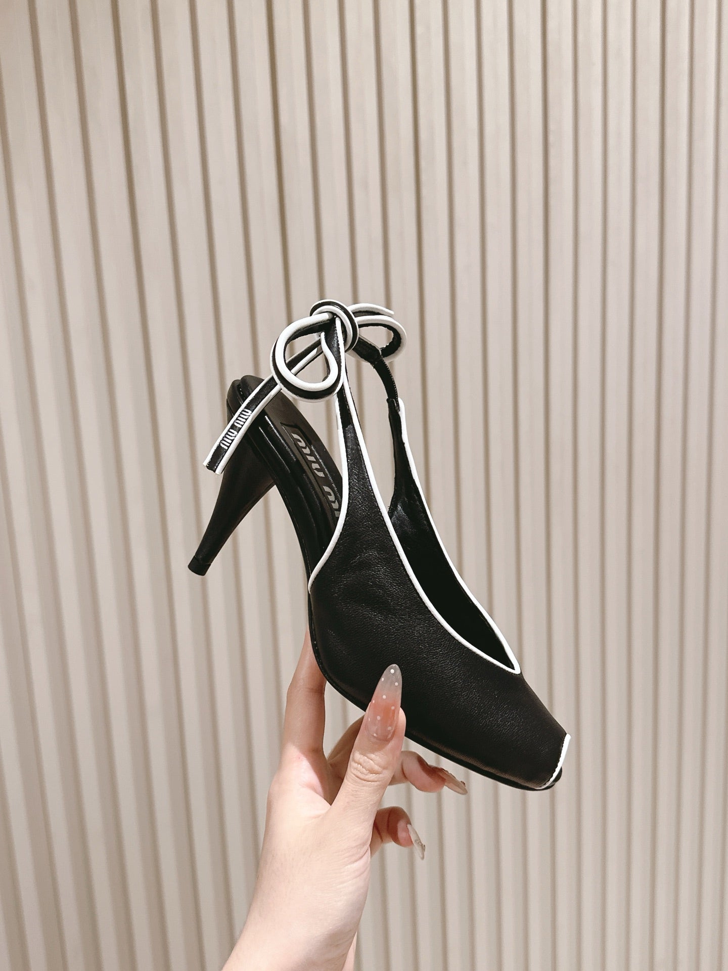 Miu 26 High Heel Slingback 75 Black Cowhide 592081