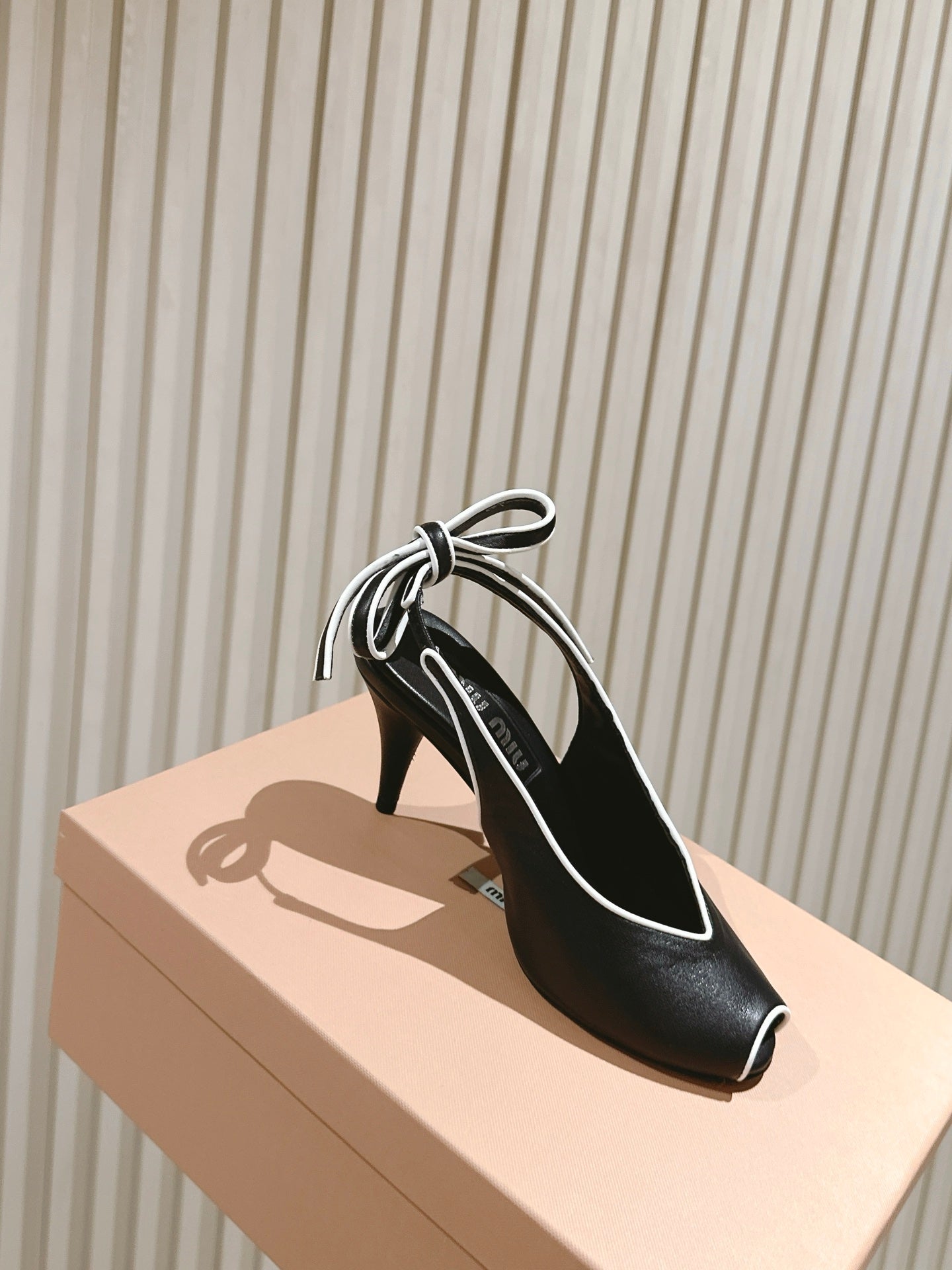 Miu Mordoré Slingback Pumps 85mm Black Cowhide Sheepskin 445793