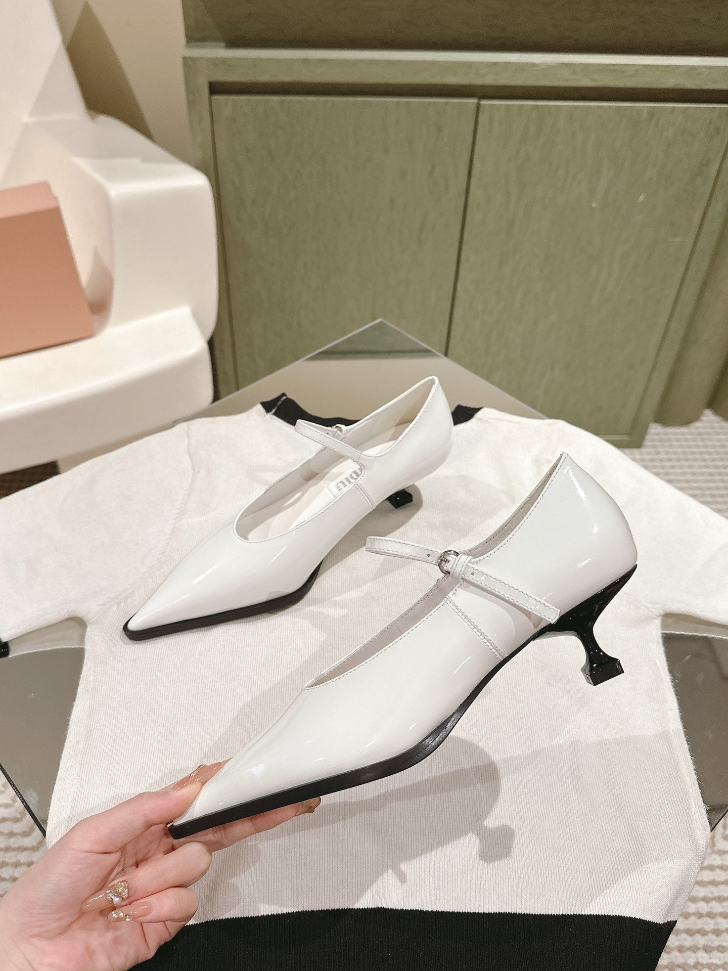 MiuΓπ΅πππππ Singback 55mm White Patent Leather 445534