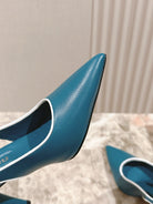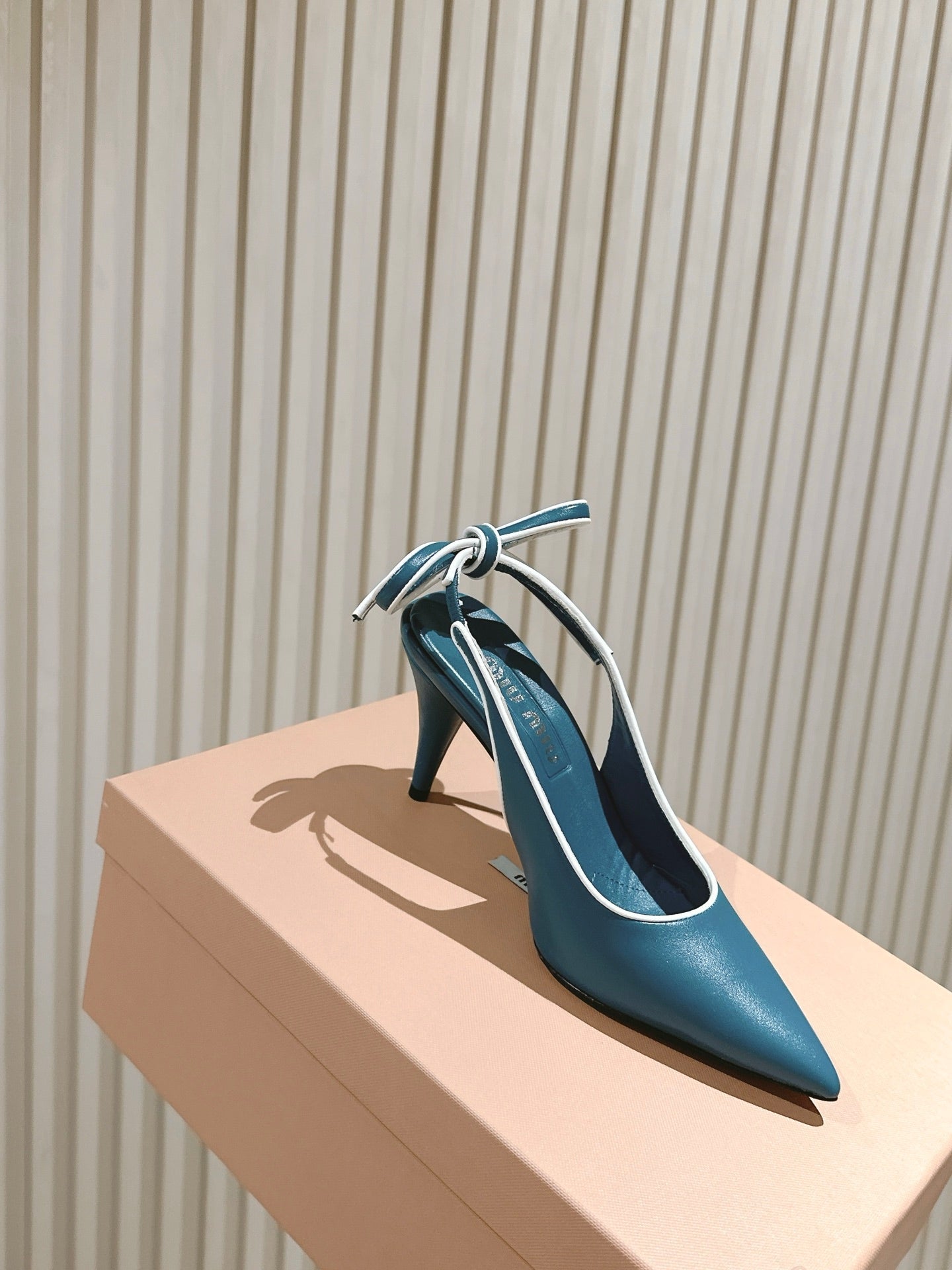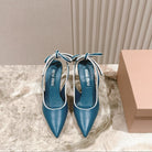 Miu Mordoré Pointed Toe Slingback Pumps 85mm Blue-teal Cowhide Sheepskin 445787
