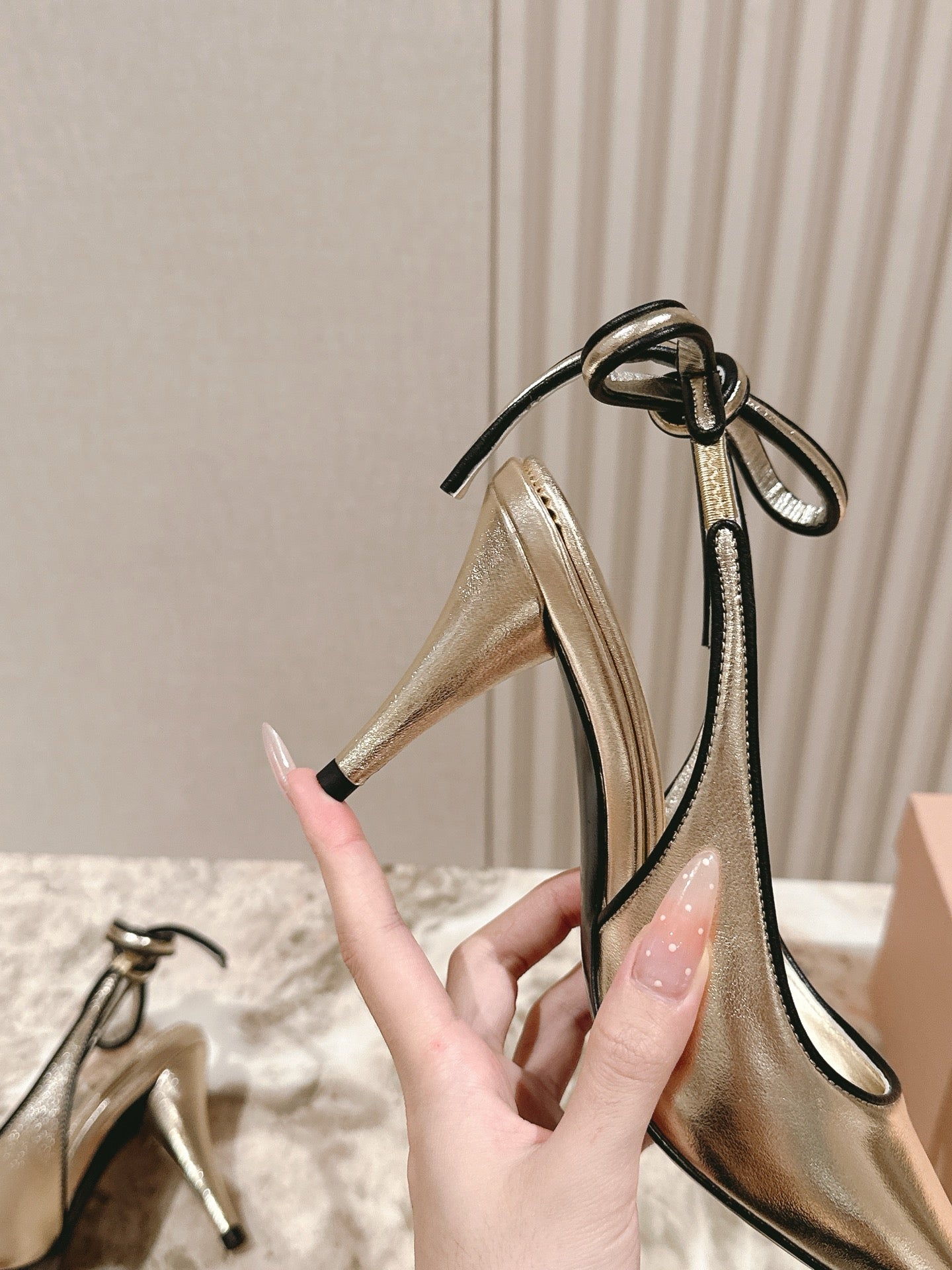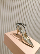 Miu Mordoré Pointed Toe Slingback Pumps 85mm Light Gold Cowhide Sheepskin 445789