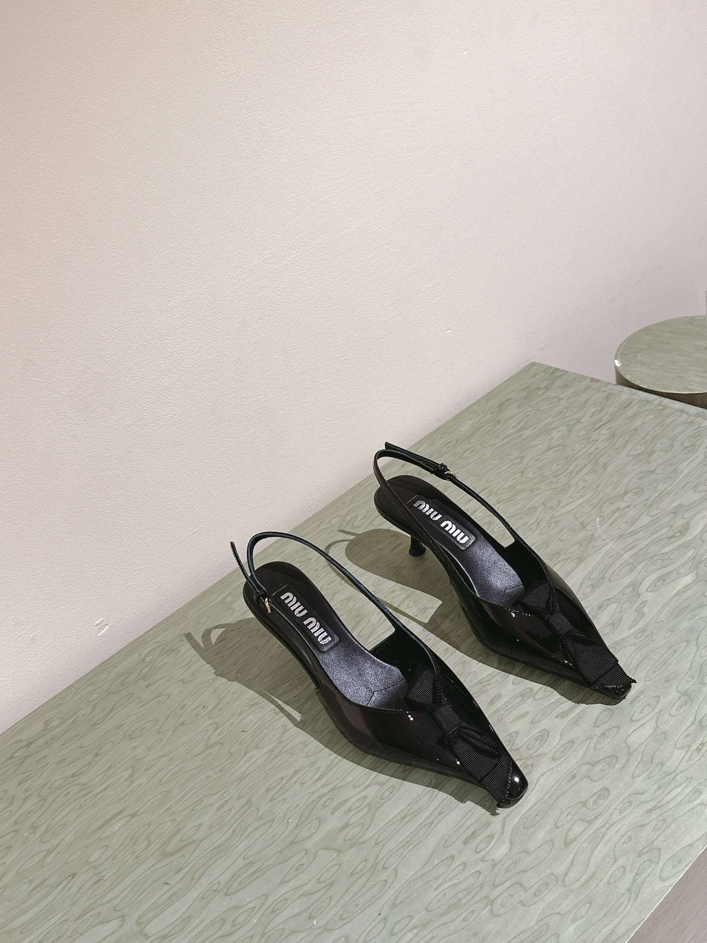 Miu x Balanc Small Bow Buckle SlingBack 45mm Black Patent Leather 445867