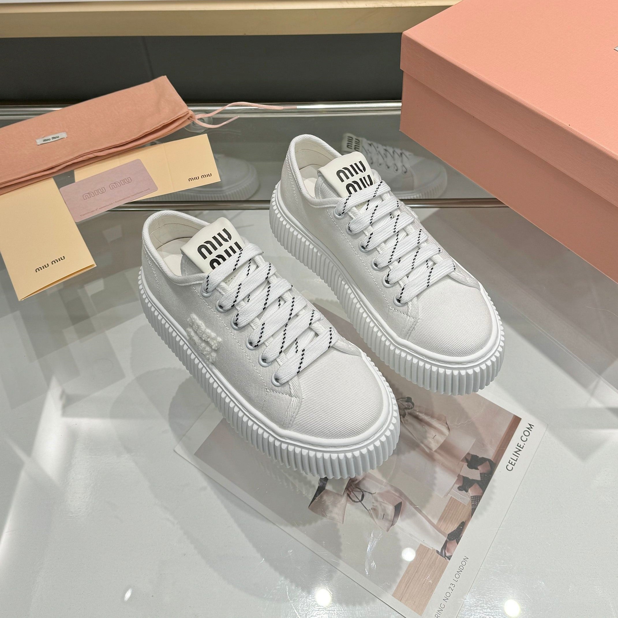 Miu logo-patch sneakers 45mm White Canvas 456833