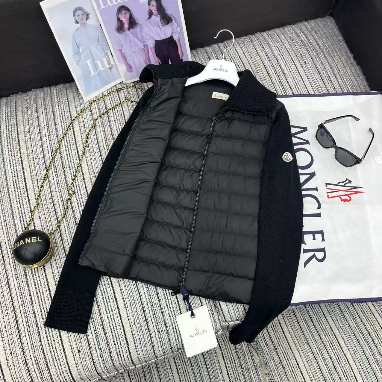 MC 2025 Quilted Knit-panel Puffer Jacket Black Polyester Wool 528747