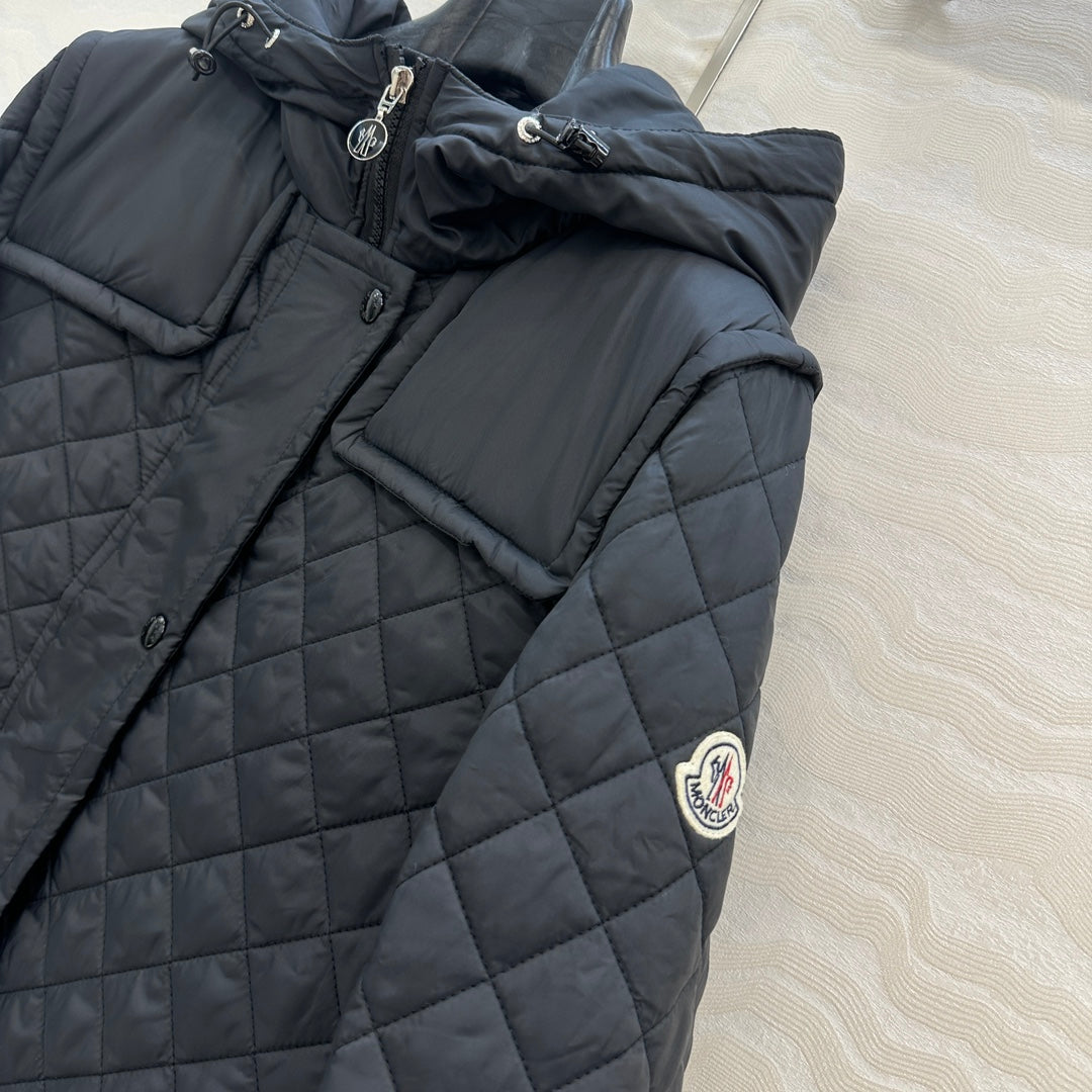 Moncler 25 Quilted Long Coat Black Polyester