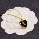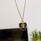 CC HEART BLACK ENAMEL GOLD NECKLACE