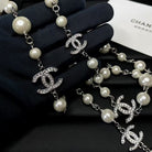 CC Pearl Silver Hardware Long Necklace 65cm with Crystals