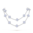 CLOVER 20 MOTIF CHALCEDONY 86CM SILVER NECKLACE