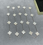CLOVER 20 MOTIF WHITE MOP 86CM SILVER NECKLACE