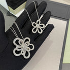 DOUBLE LACE FLOWER SILVER PENDANT DIAMOND NECKLACE
