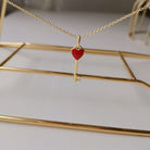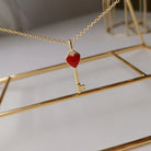 KEY PEDANT CARNELIAN HEART GOLD NECKLACE