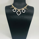 MULTI CHARM PINK GOLD BLACK ENAMEL NECKLACE