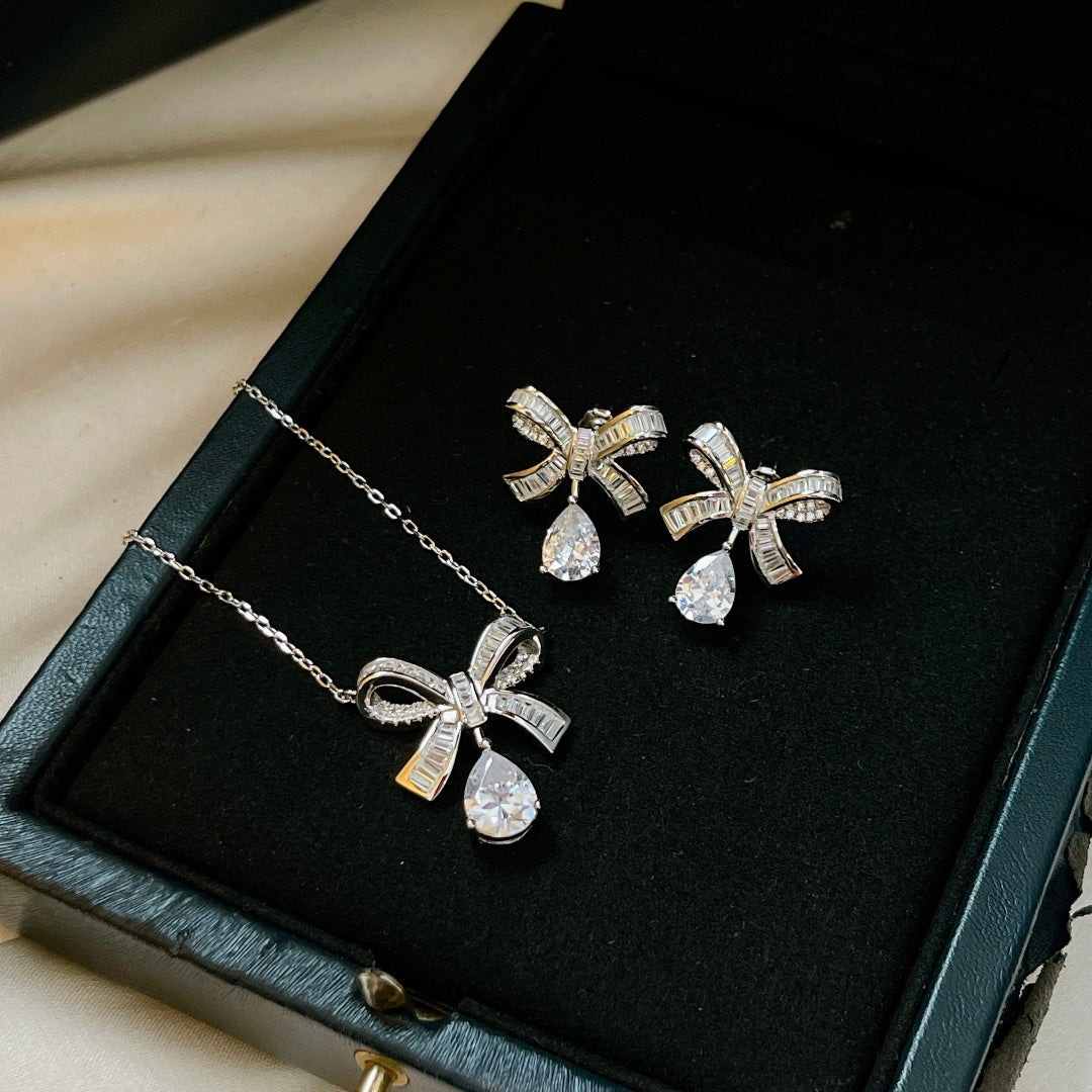 TILDA BOW CLASSIC SILVER DIAMOND DROP NECKLACE