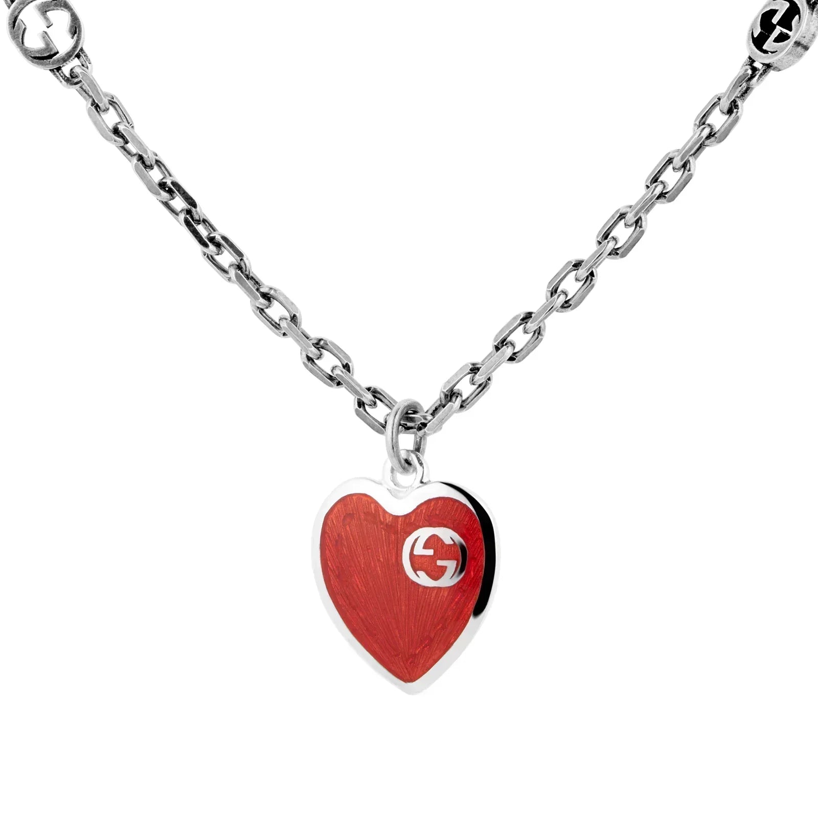 GG HEARTS STERLING SILVER RED ENAMEL PENDANT NECKLACE