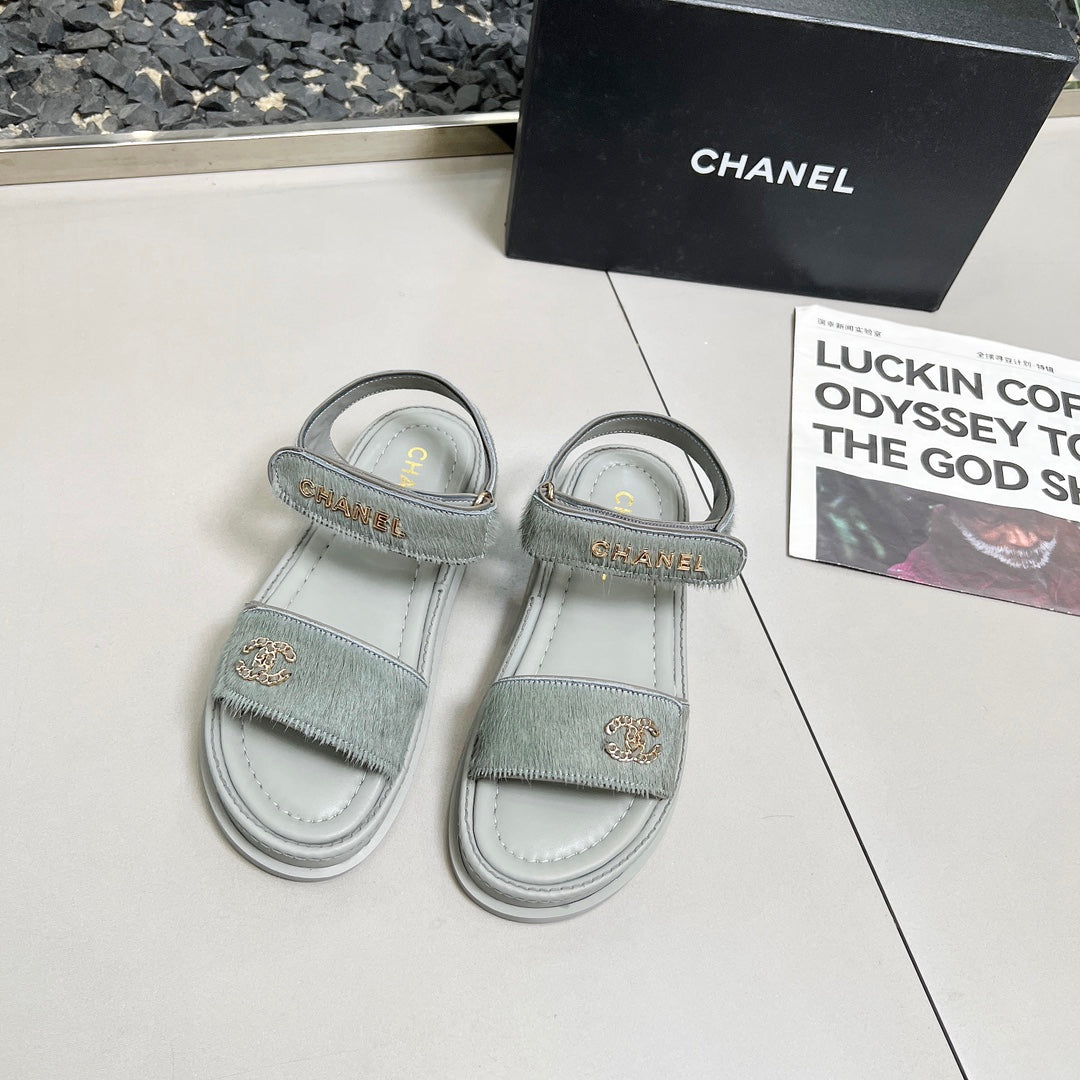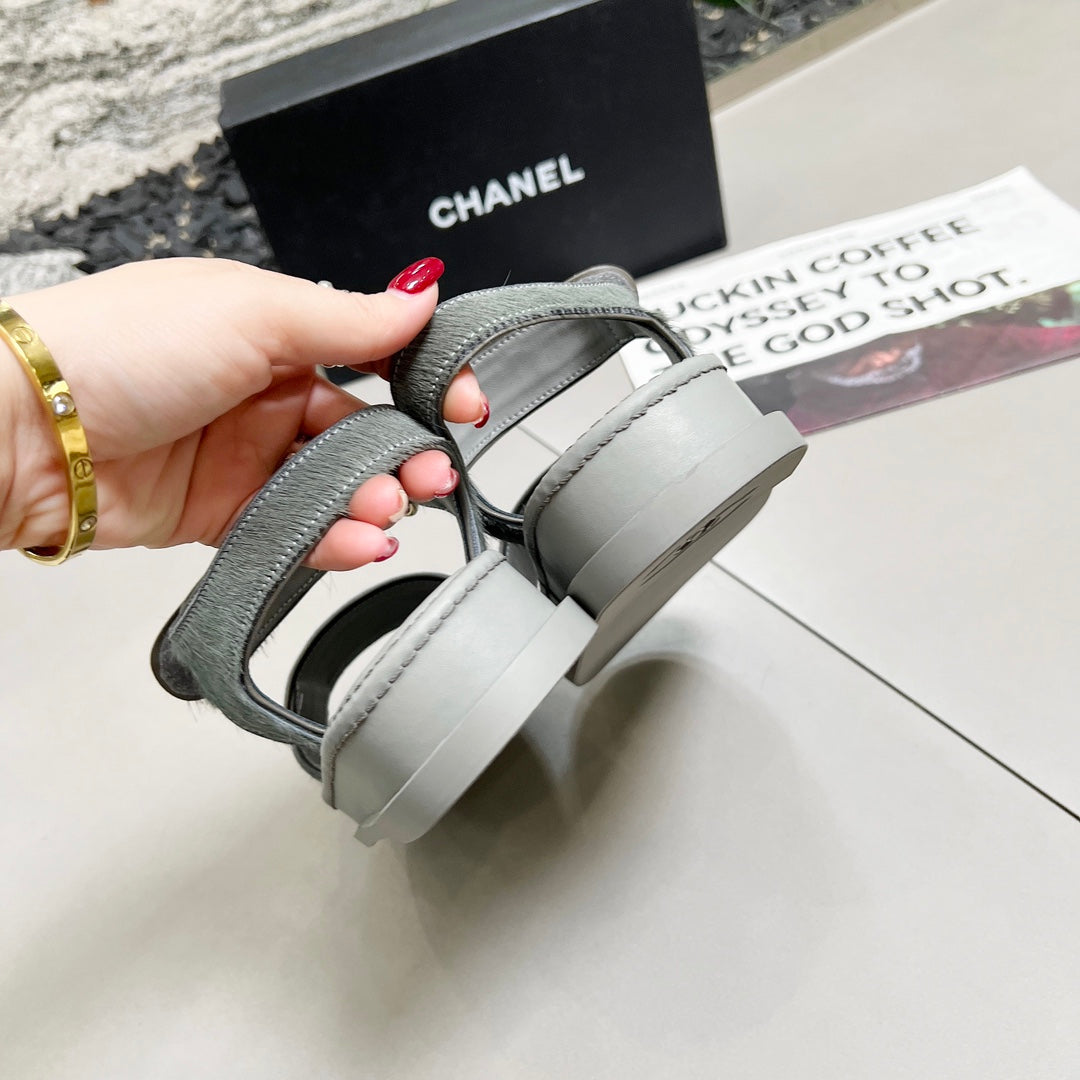 CC 25A Sandals Grey Horse Fur Leather 338603