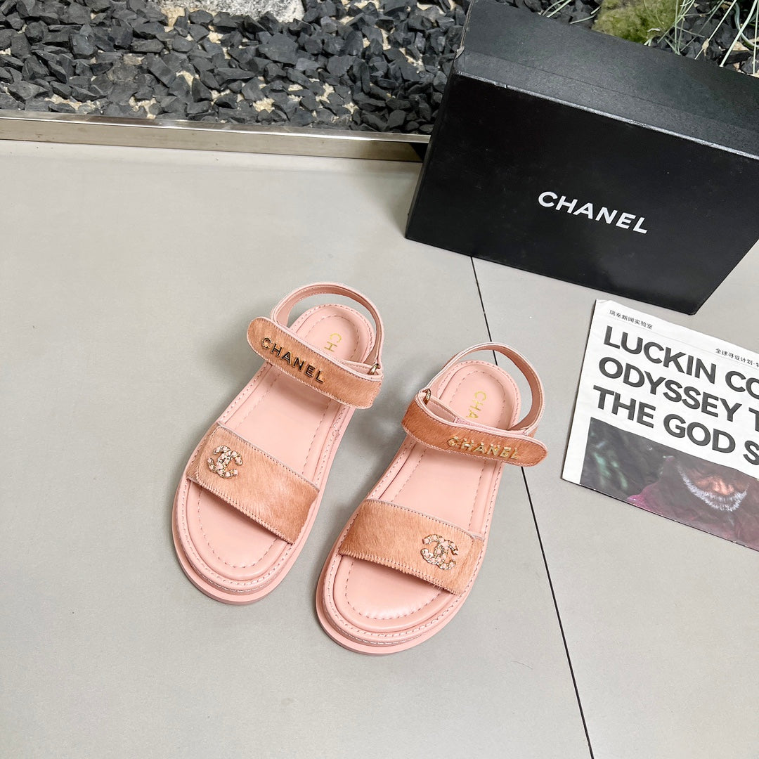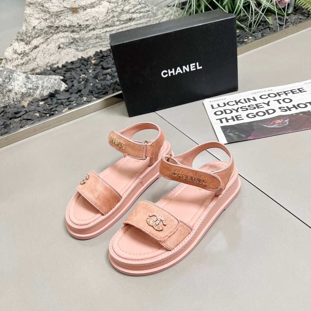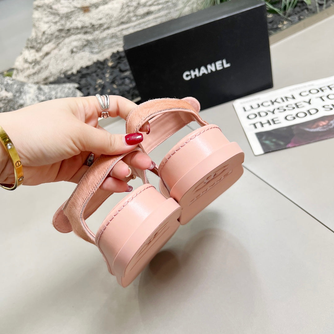 CC 25A Sandals Pink Horse Fur Leather 338602