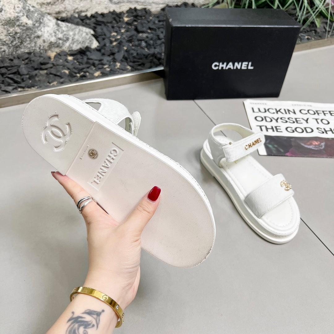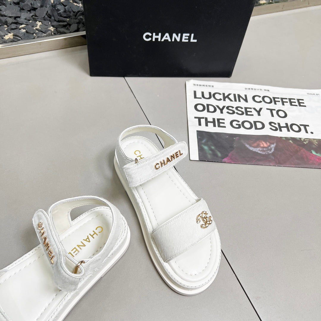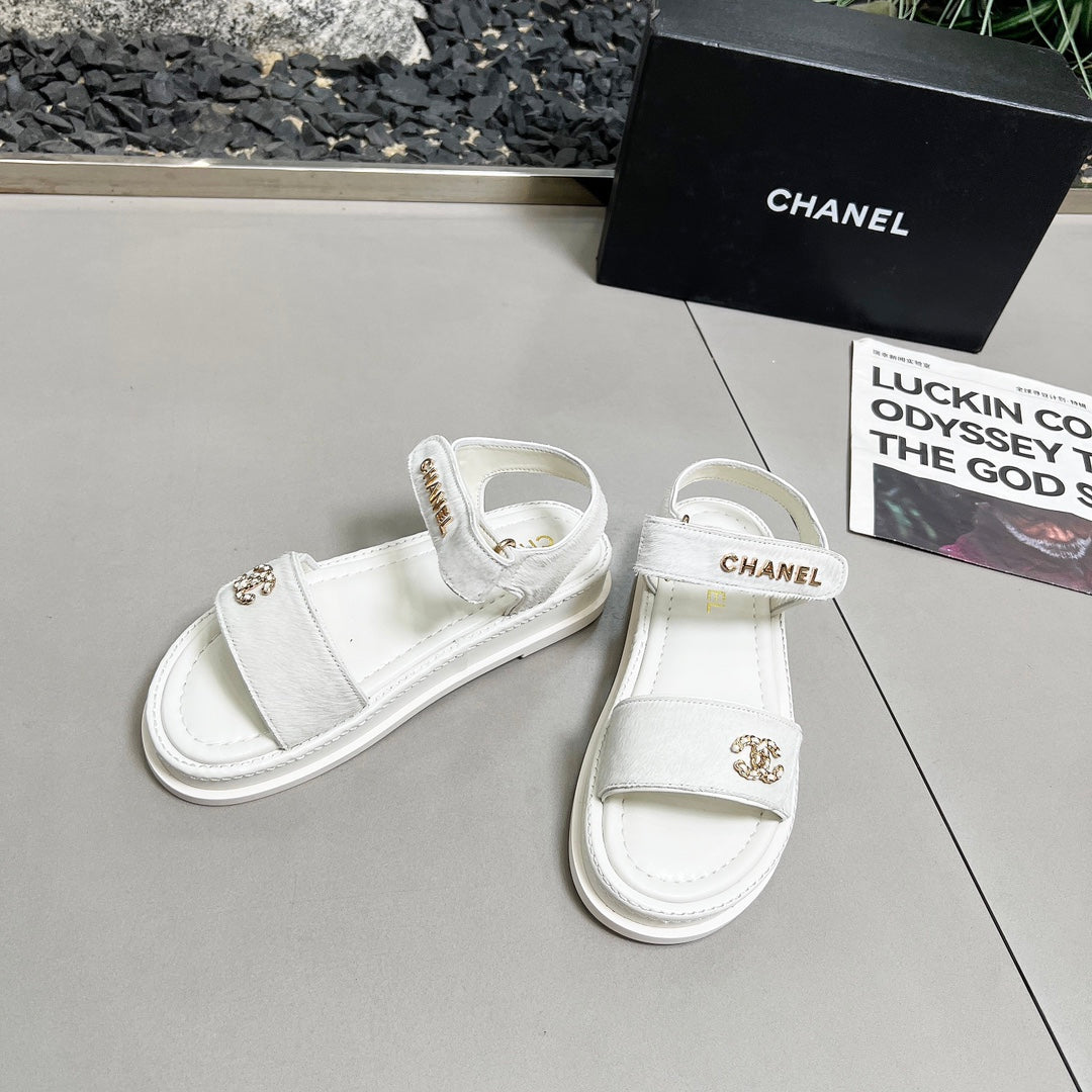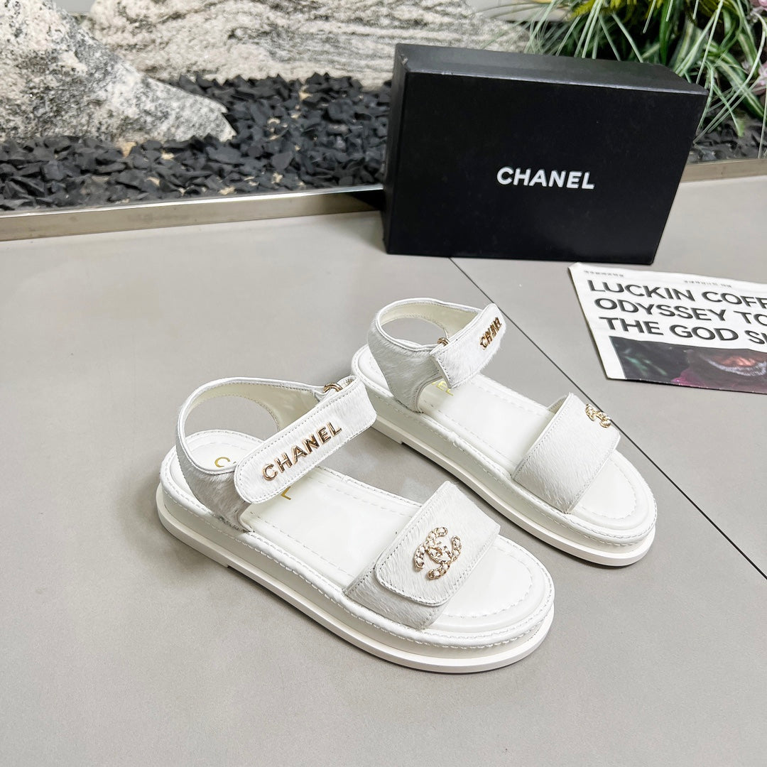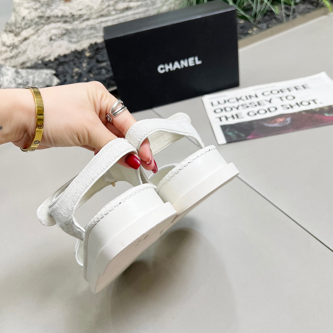 CC 25A Sandals White Horse Fur Leather 338604