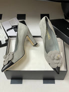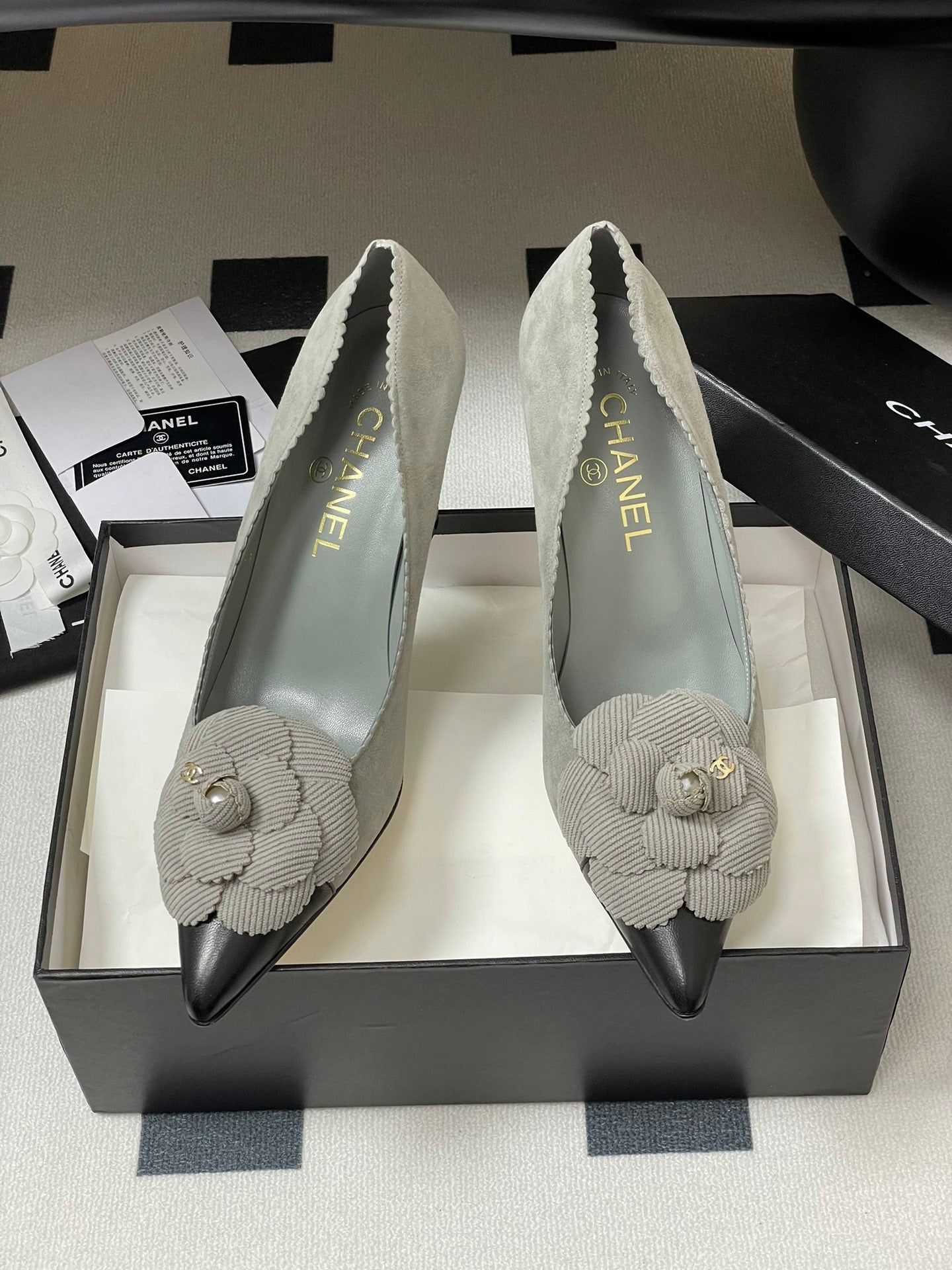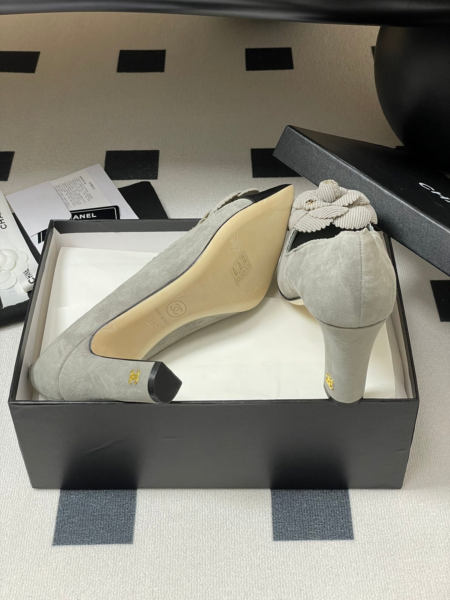 CC 25C Classic Camellia Pointed High Heels Pump 85mm Grey Suede 247615