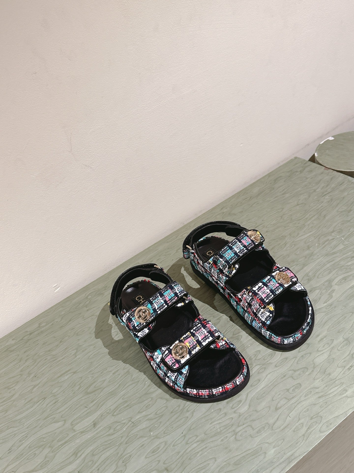 CC 25C Dad Sandals Black Colorful Tweed 462230