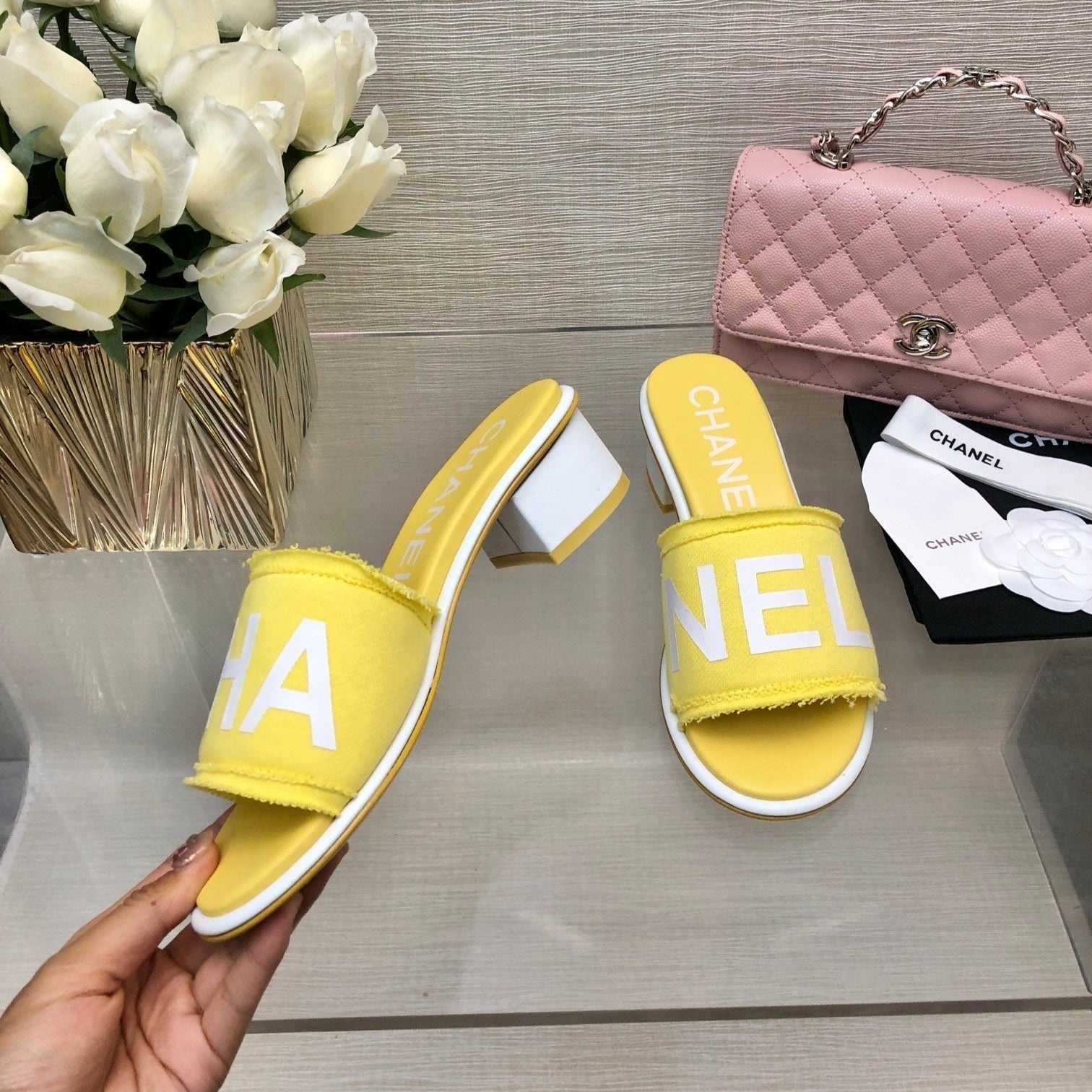CC 25C Mid Heel Mule Yellow Fabric Material 212958