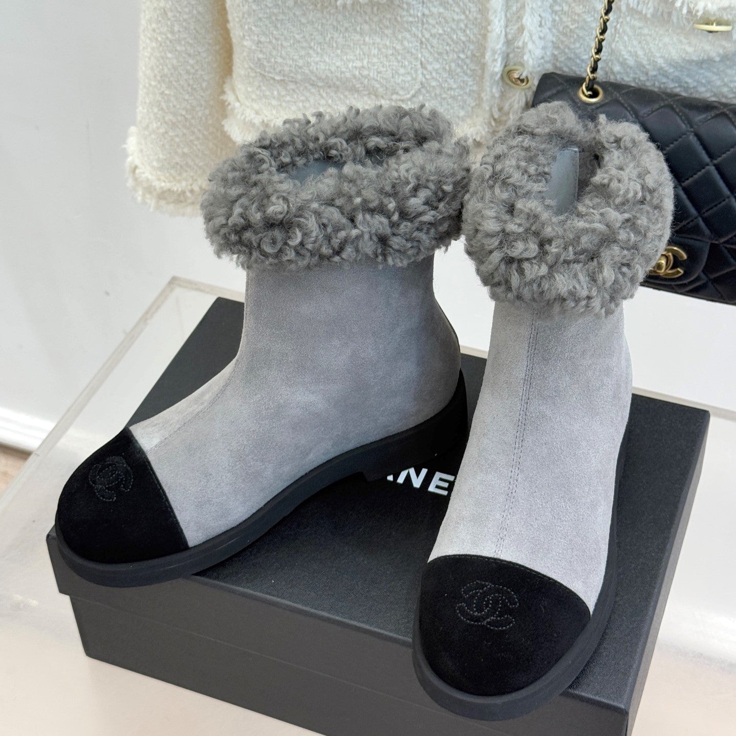 CC 25K Double C Colorblock Furry Snow Boots Grey Suede 512067