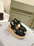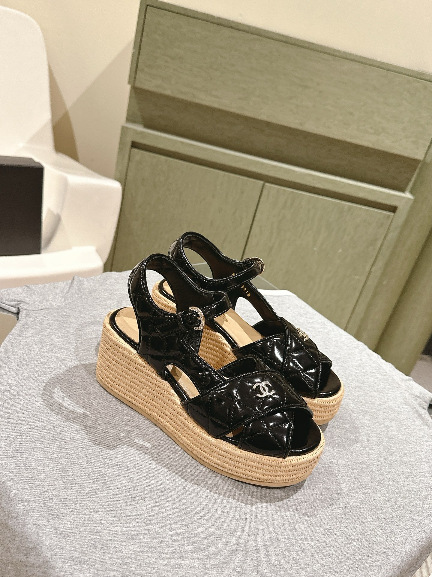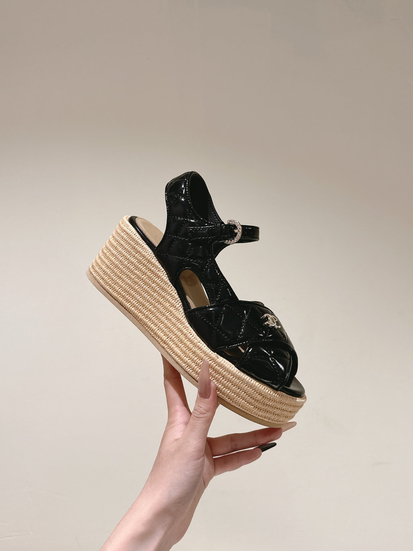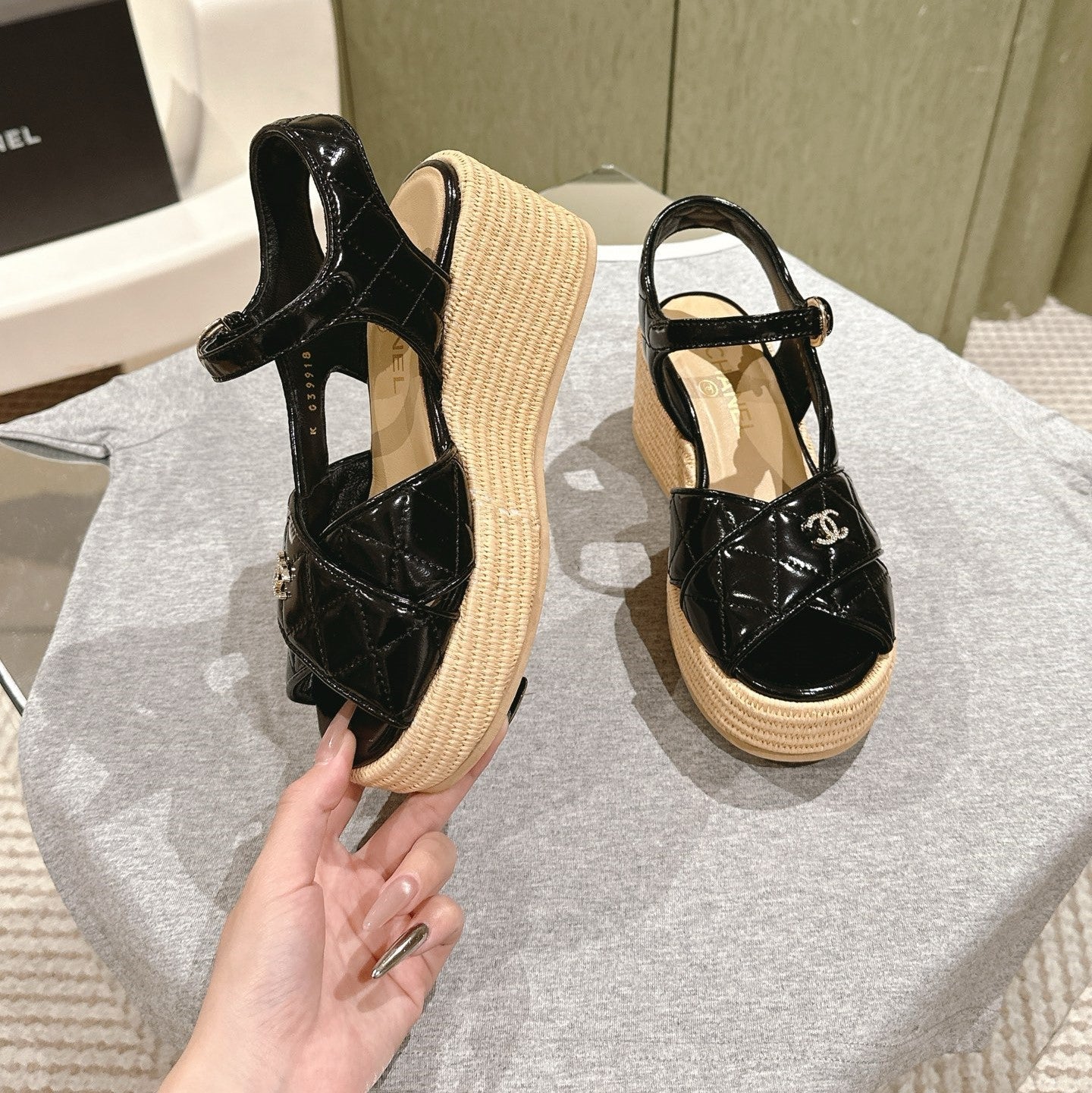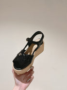 CC 25ss Espadrille Sandals 85mm Black Quited Sheepskin 462242