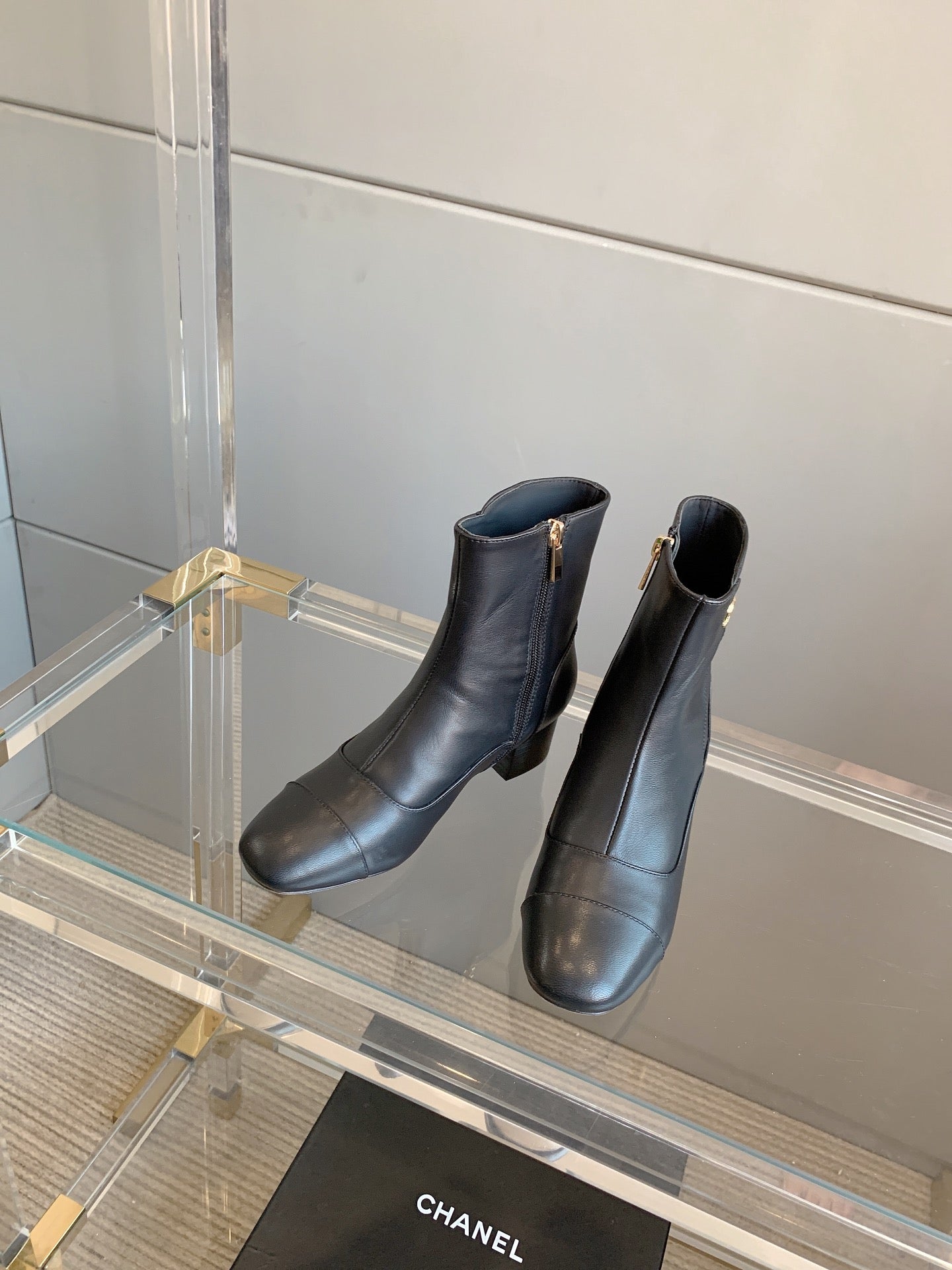 CC Ankle Boots Block Heel 60mm Black Cowhide 464567
