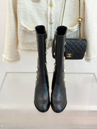 CC High Heel Boots Black Sheepskin Mix Charm 512034