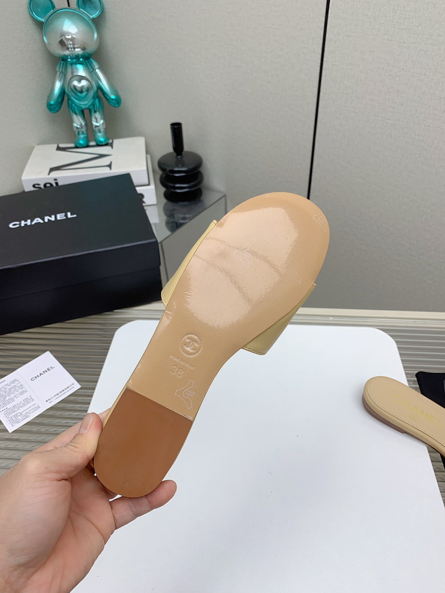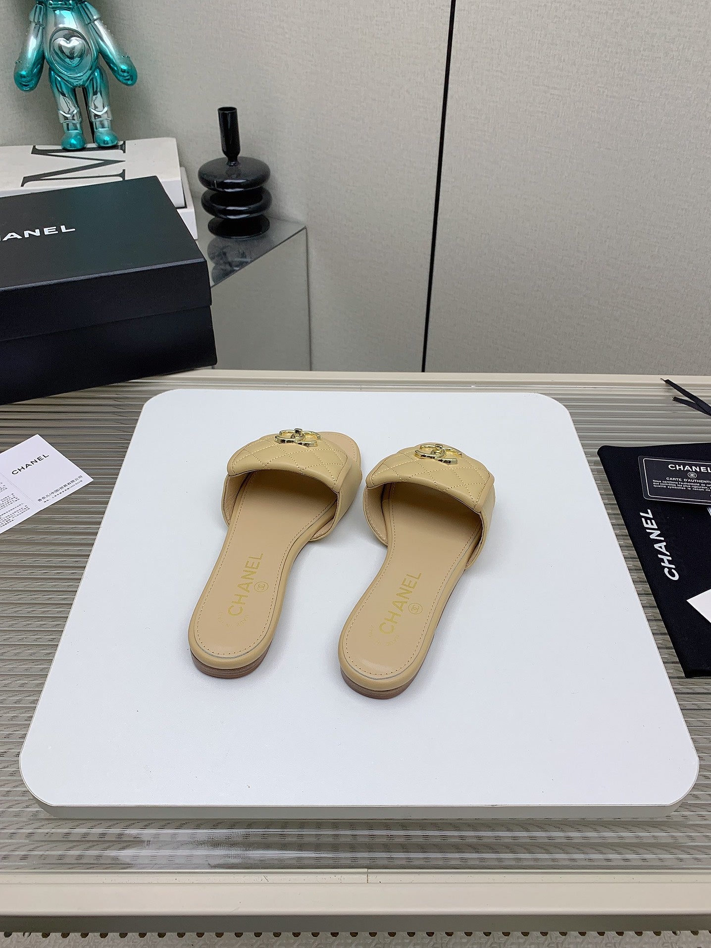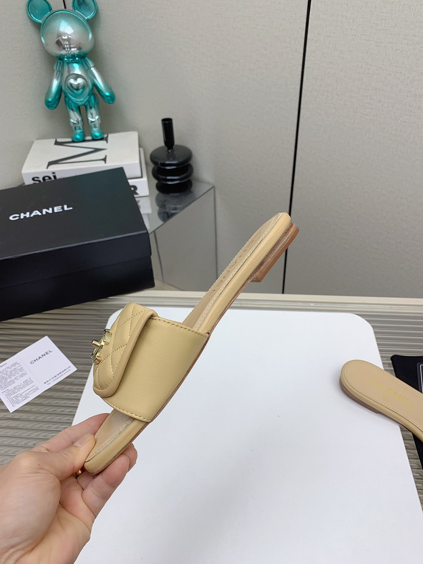 CC Slippers In Beige Quilted Lambskin 148963