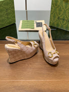 GG WEDGE PLATFORM IN ALMOND BEIGE MONOGRAM JACQUARD FABRIC