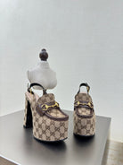 GG WOMEN'S HORSEBIT PLATFORM LOAFER SLINGBACK IN TAN BEIGE CANVAS