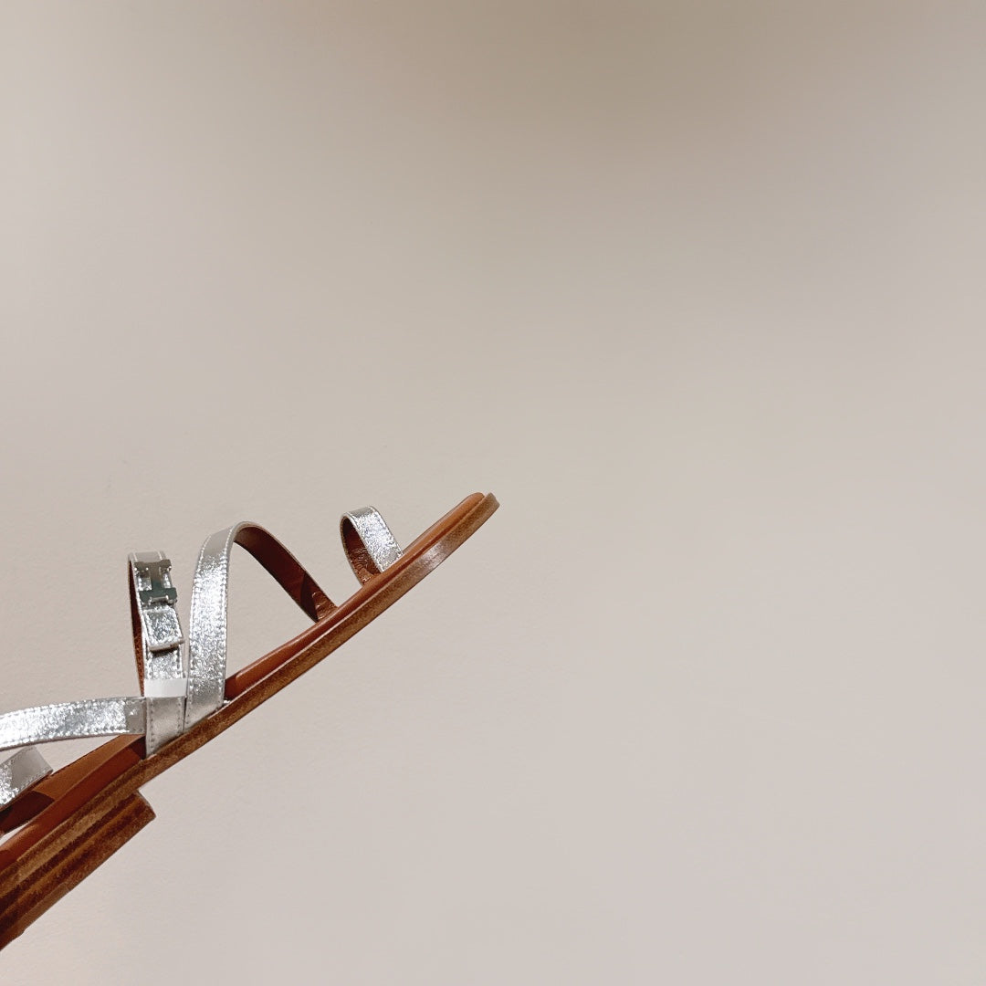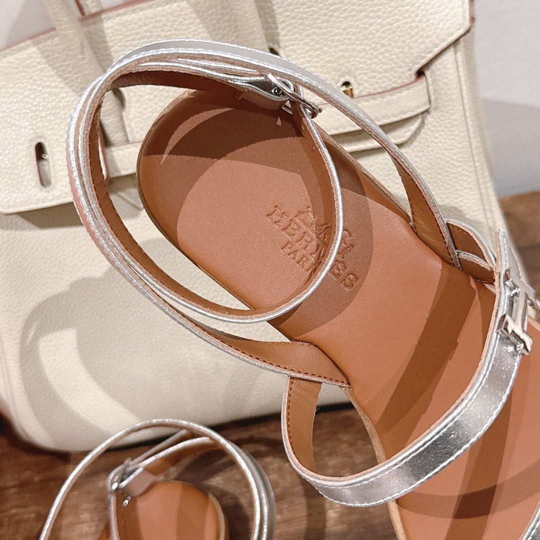 HM Harmonie Sandal Light Brown With Silver Metallic Swift Calfskin 256883
