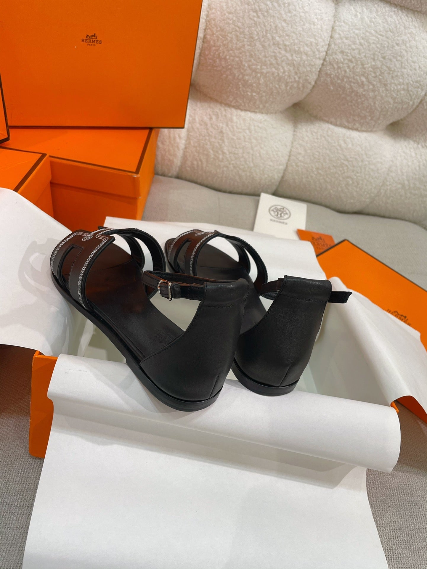 • Material: Sandal in Clafskin with straight cut edges, "H" cut-out detail and thin ankle strap.