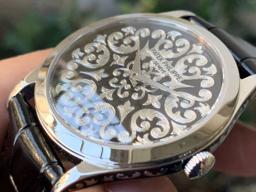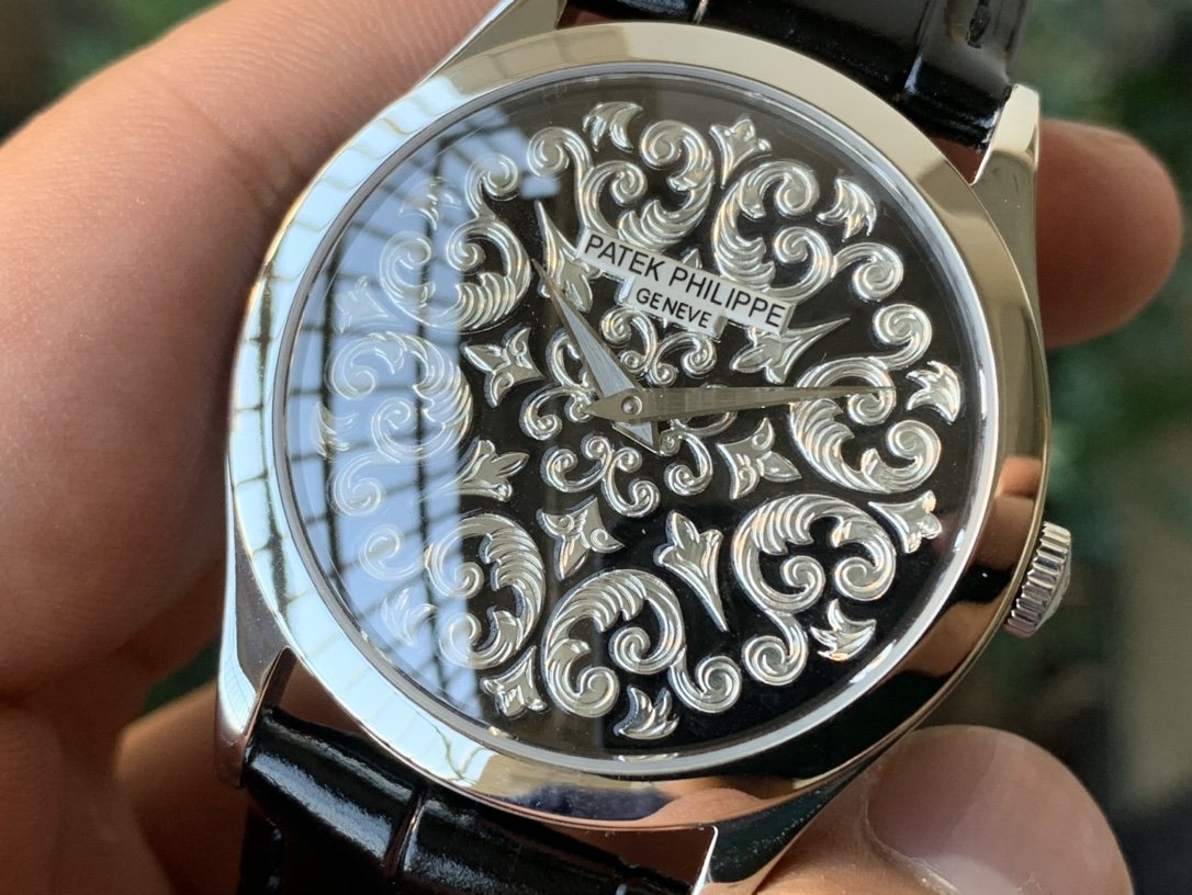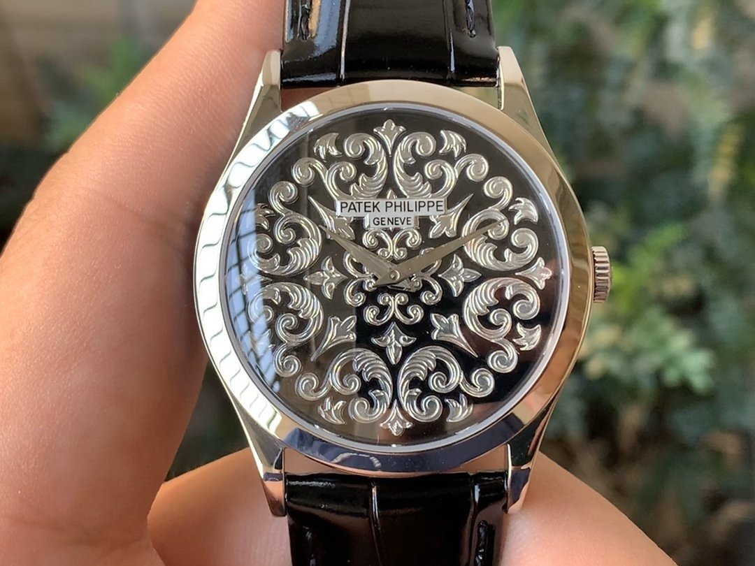 PATEK CALATRAVA 38 PLATINUM HAND-ENGRAVED BLACK DIAL