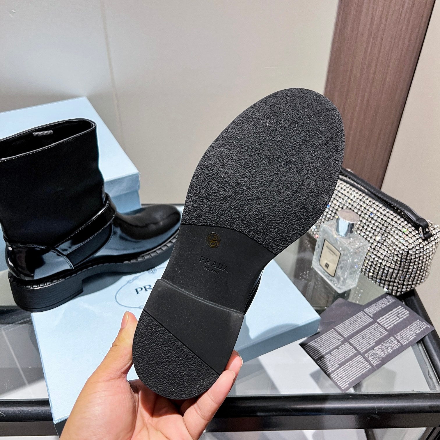 PRA LACE-UP BOOTS GLOSSY BLACK CALFSKIN