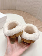 MULES ATTACHED TRIANGLE LOGO IN WHITE SHEARLING