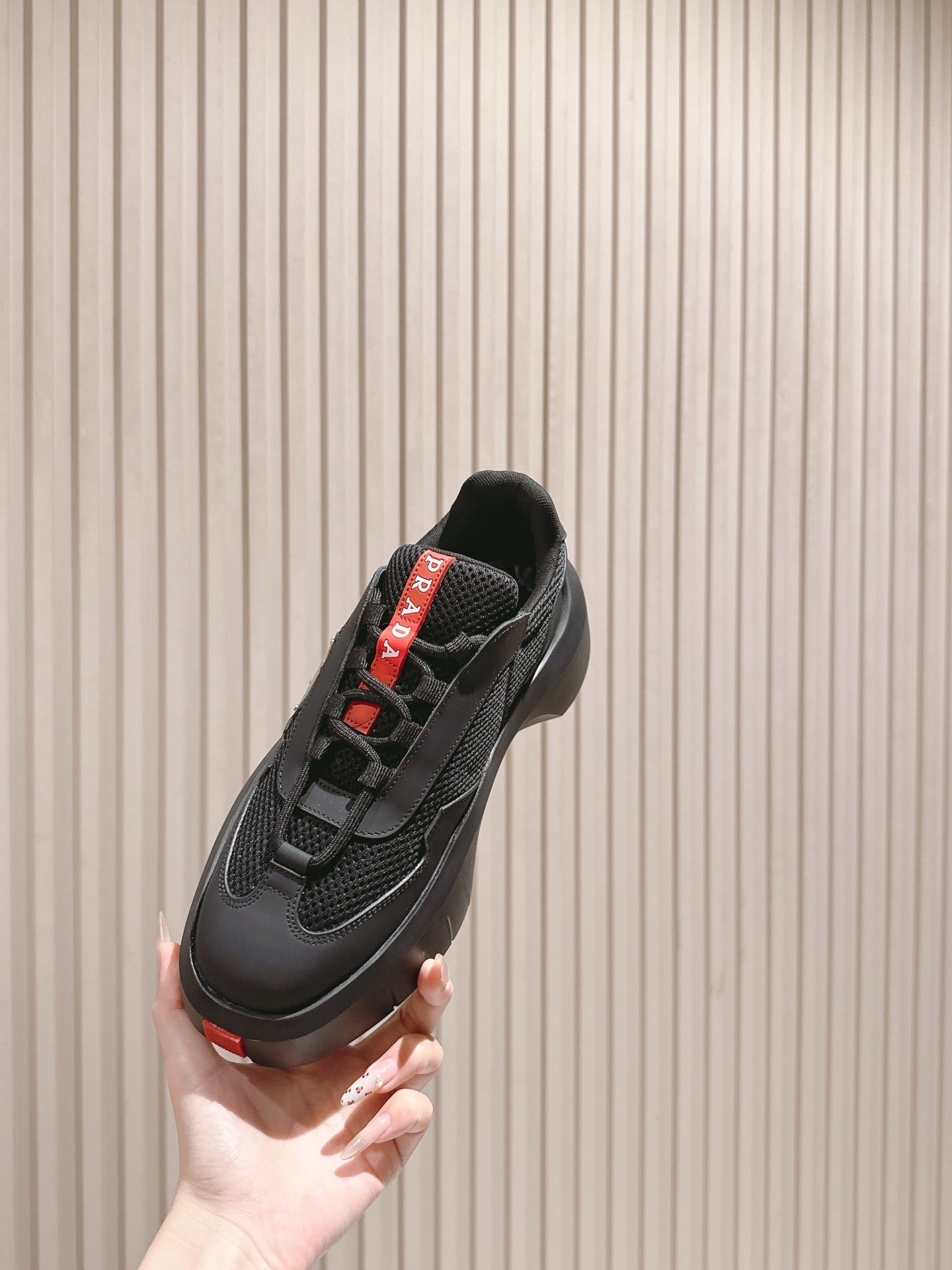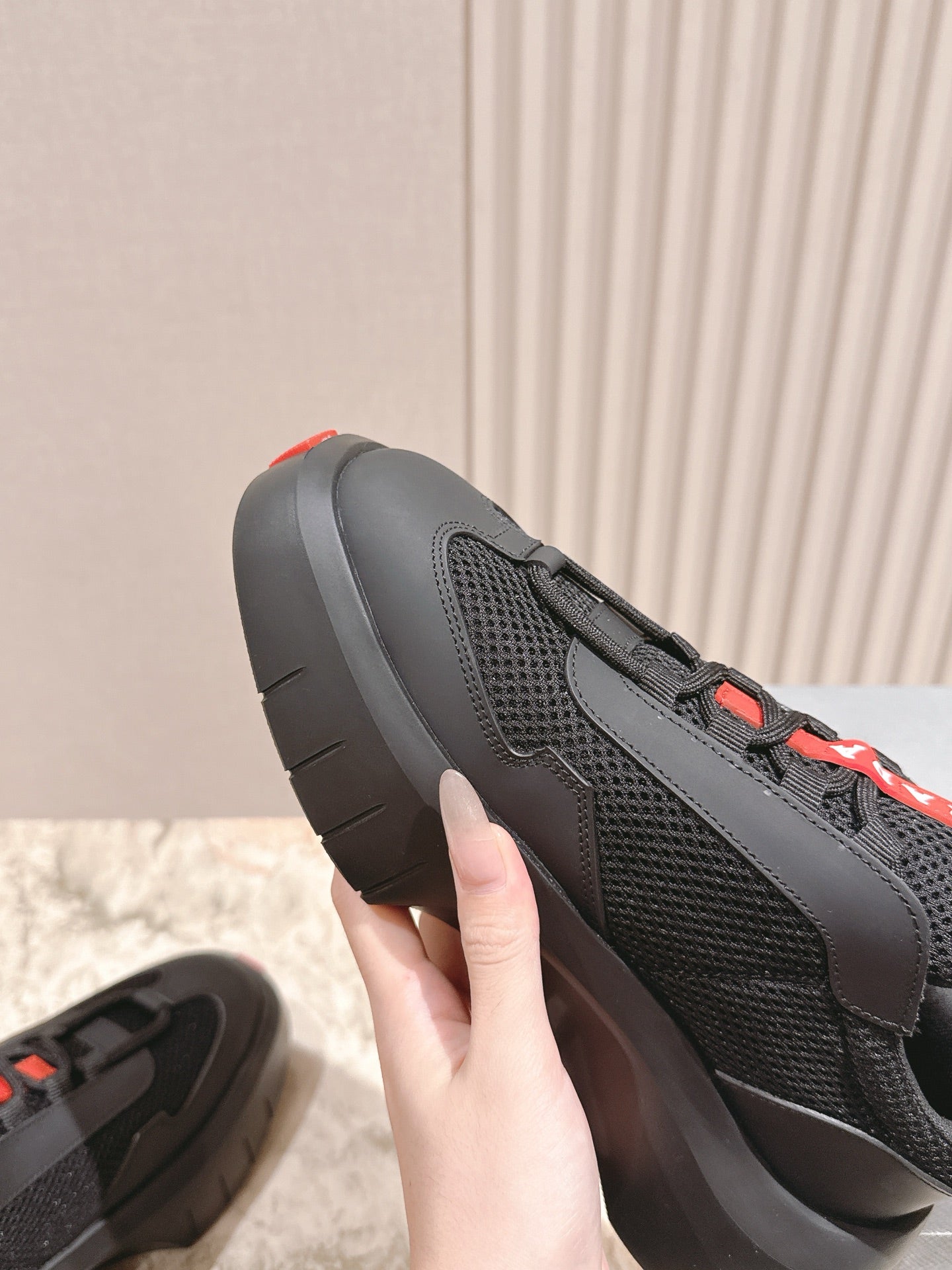 PRA 25s America's Cup Sneakers Black Red Mesh & Cowhide 449691