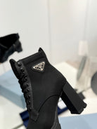 PRA RE-NYLON AND LEATHER BOOTIES BLACK