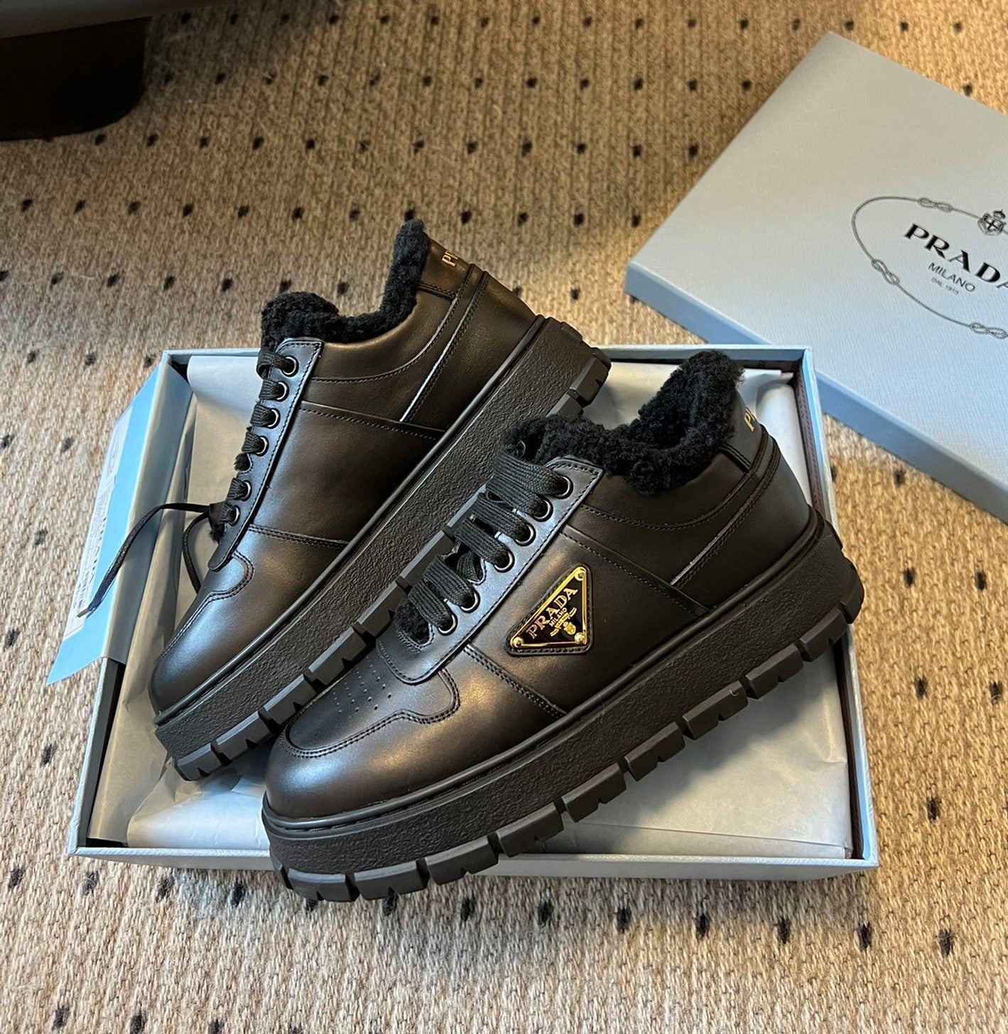 Pra Sneaker Black Cowhide Lace Wool 478563