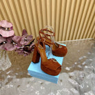 Prada 120mm Woman Camel Suede Sandals