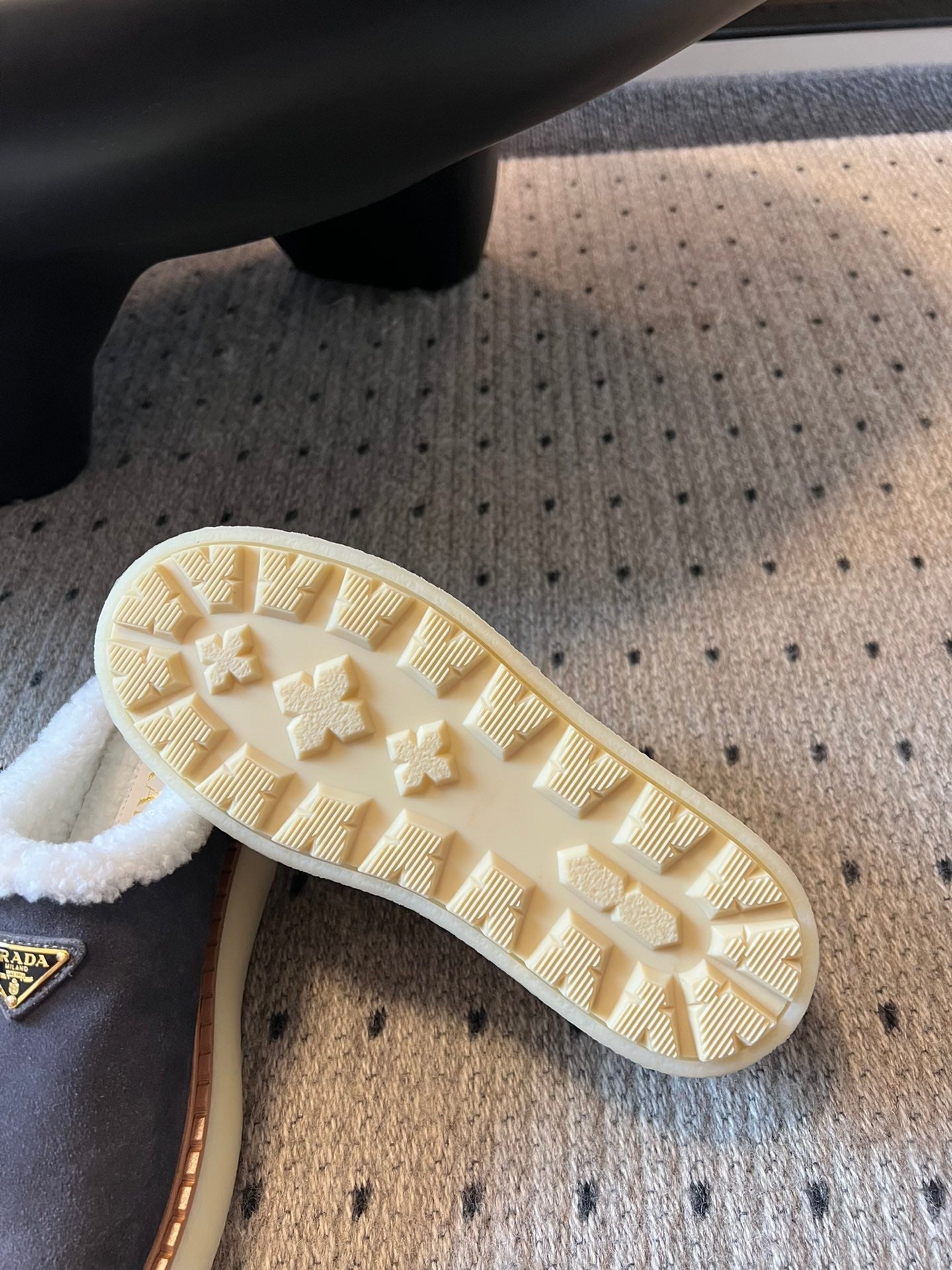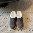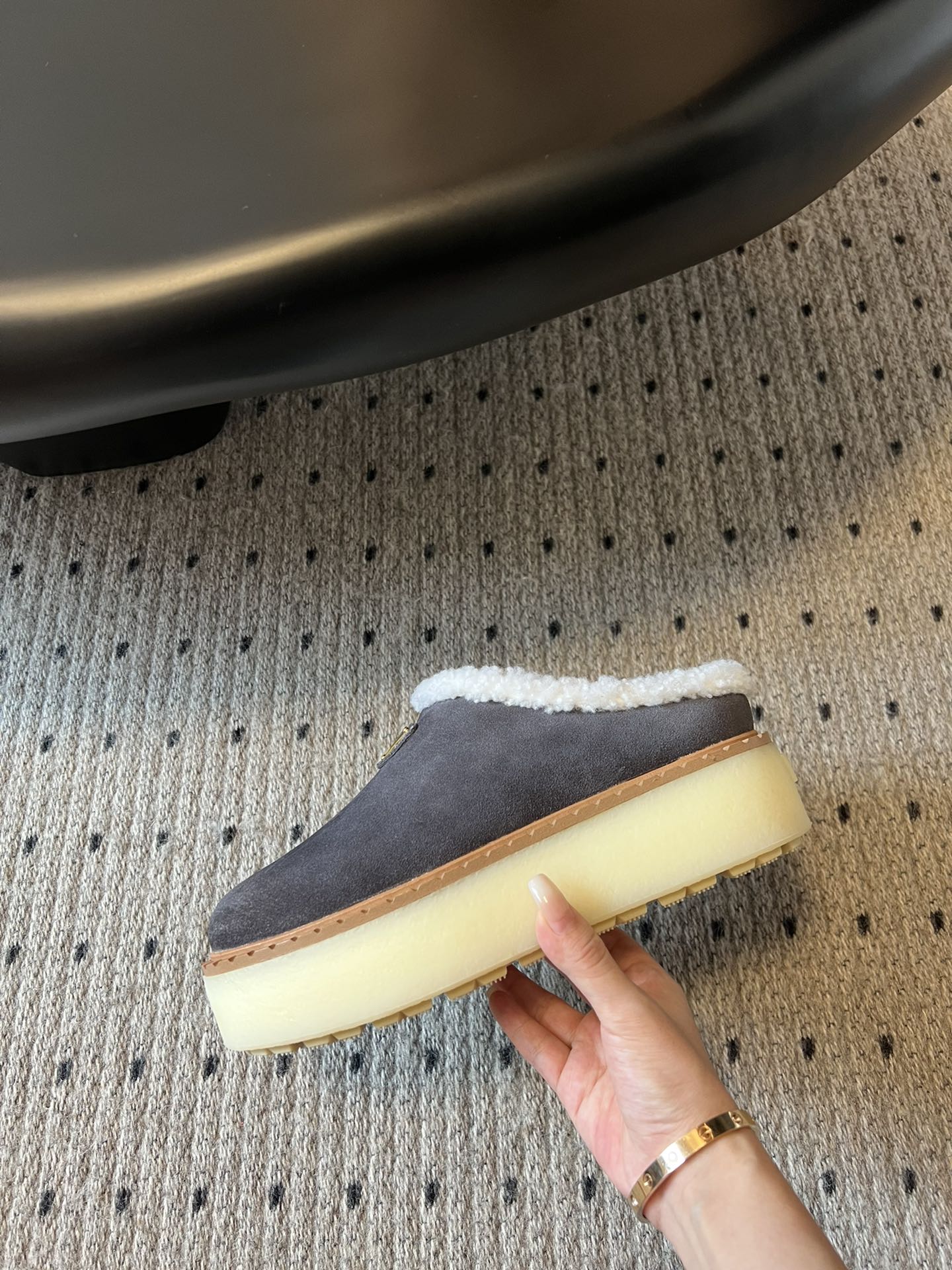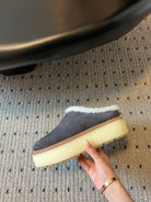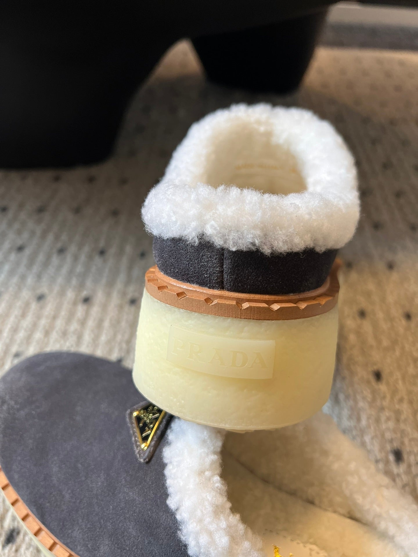 Prada 25s Furry Half-Cover Slippers Gray Suede And Wool 538427