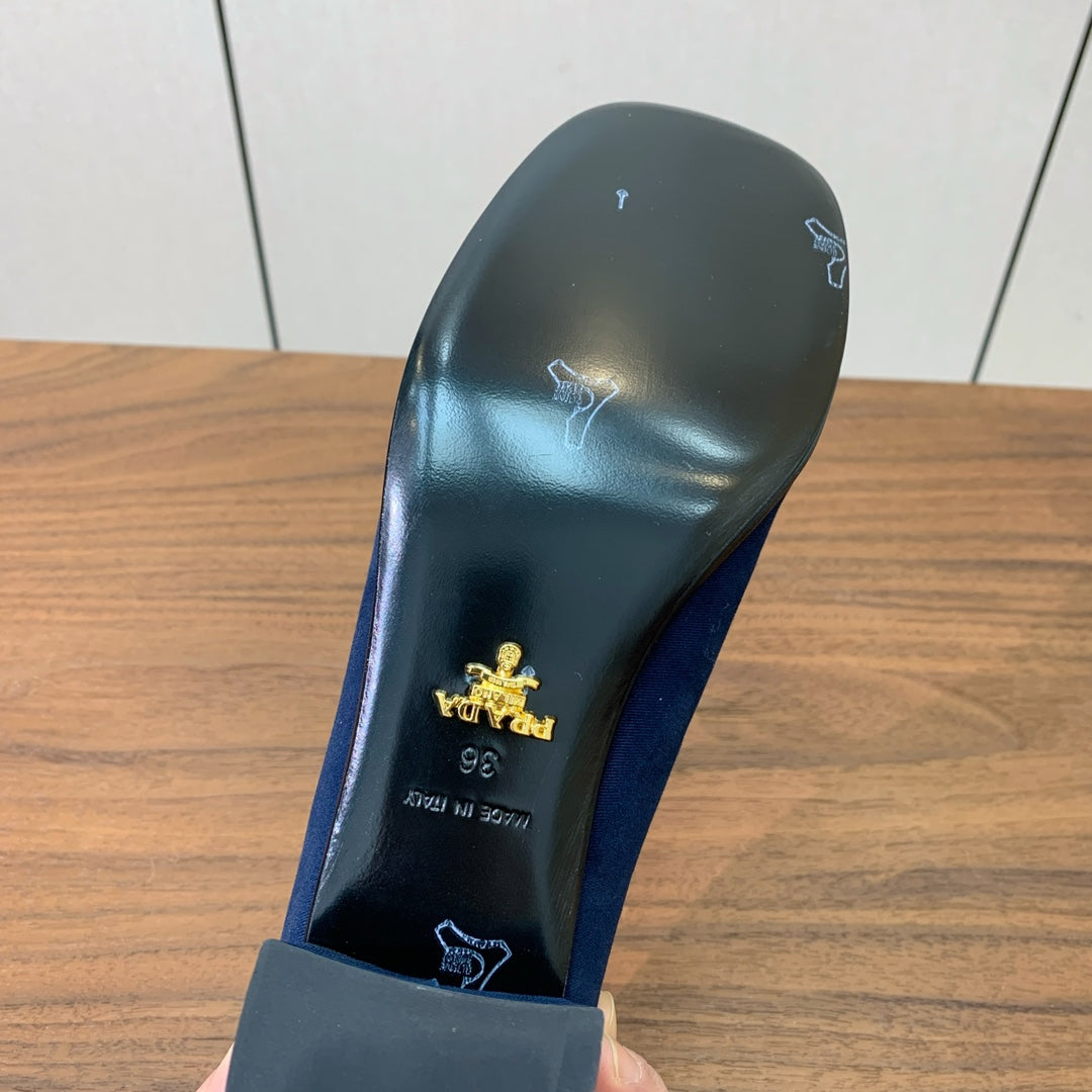 Prada 25s Mary Jane Shoes 55mm Dark Blue Fabric Patent Leather