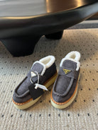 Prada 25s platform ankle boots dark gray suede and wool 538441